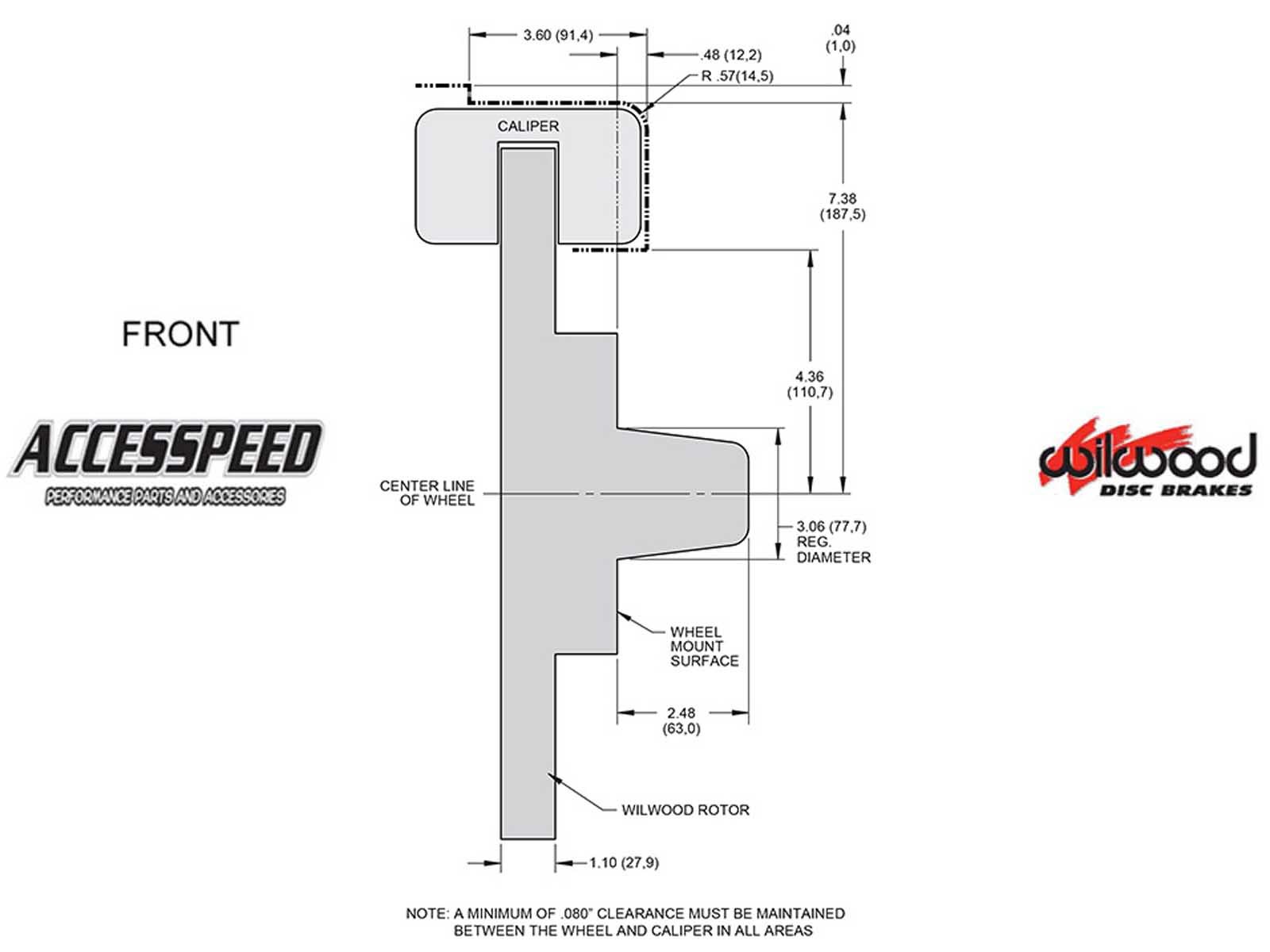 *This Brake Kit may require 17-inch or larger wheels. Please refer to the wheel clearance diagram image to verify caliper clearance for your specific wheel.