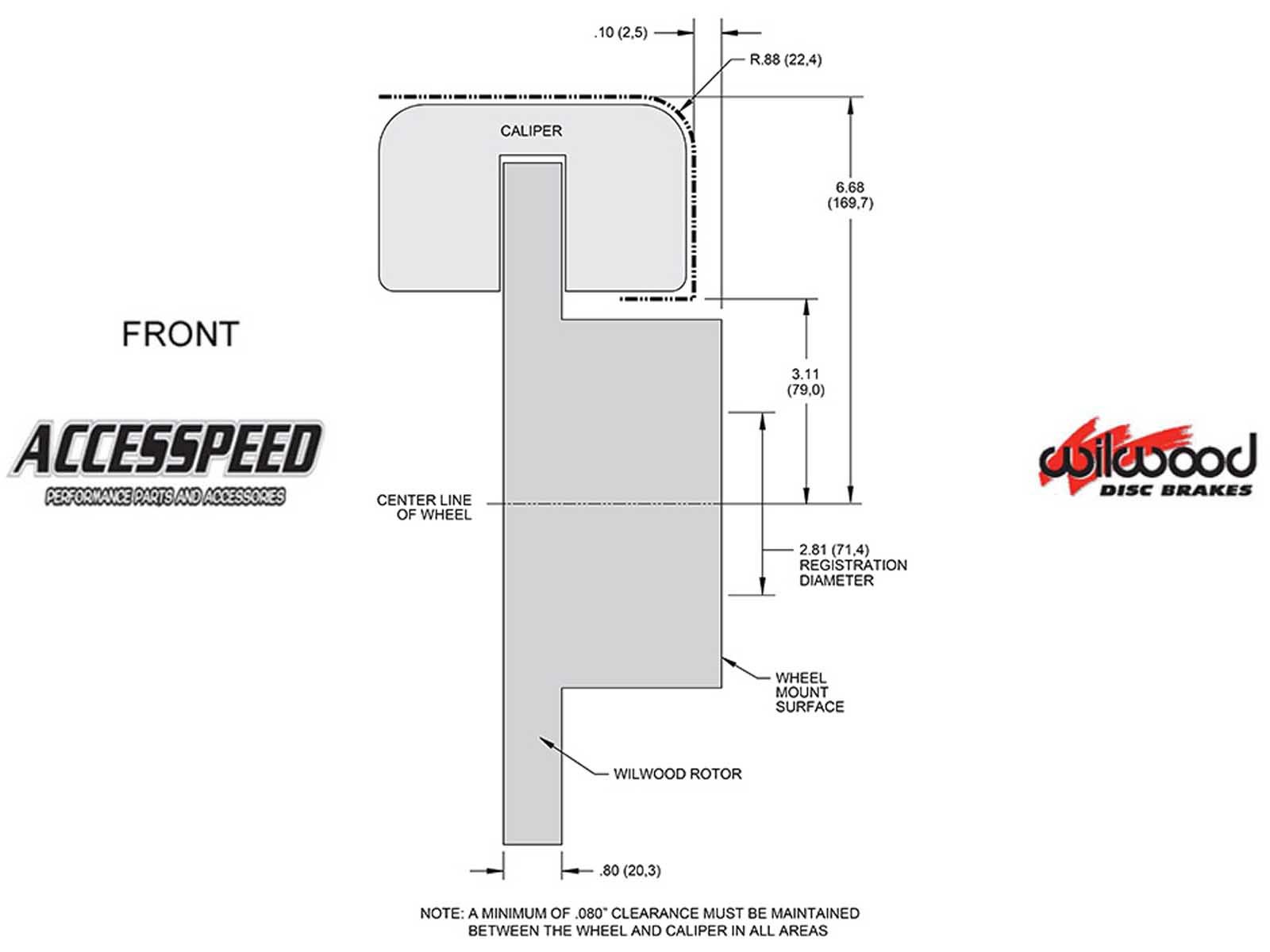 *This Brake Kit may require 15-inch or larger wheels. Please refer to the wheel clearance diagram image to verify caliper clearance for your specific wheel.
