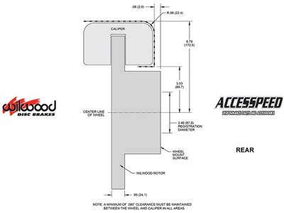 *This Brake Kit may require 15-inch or larger wheels. Please refer to the wheel clearance diagram image to verify caliper clearance for your specific wheel.