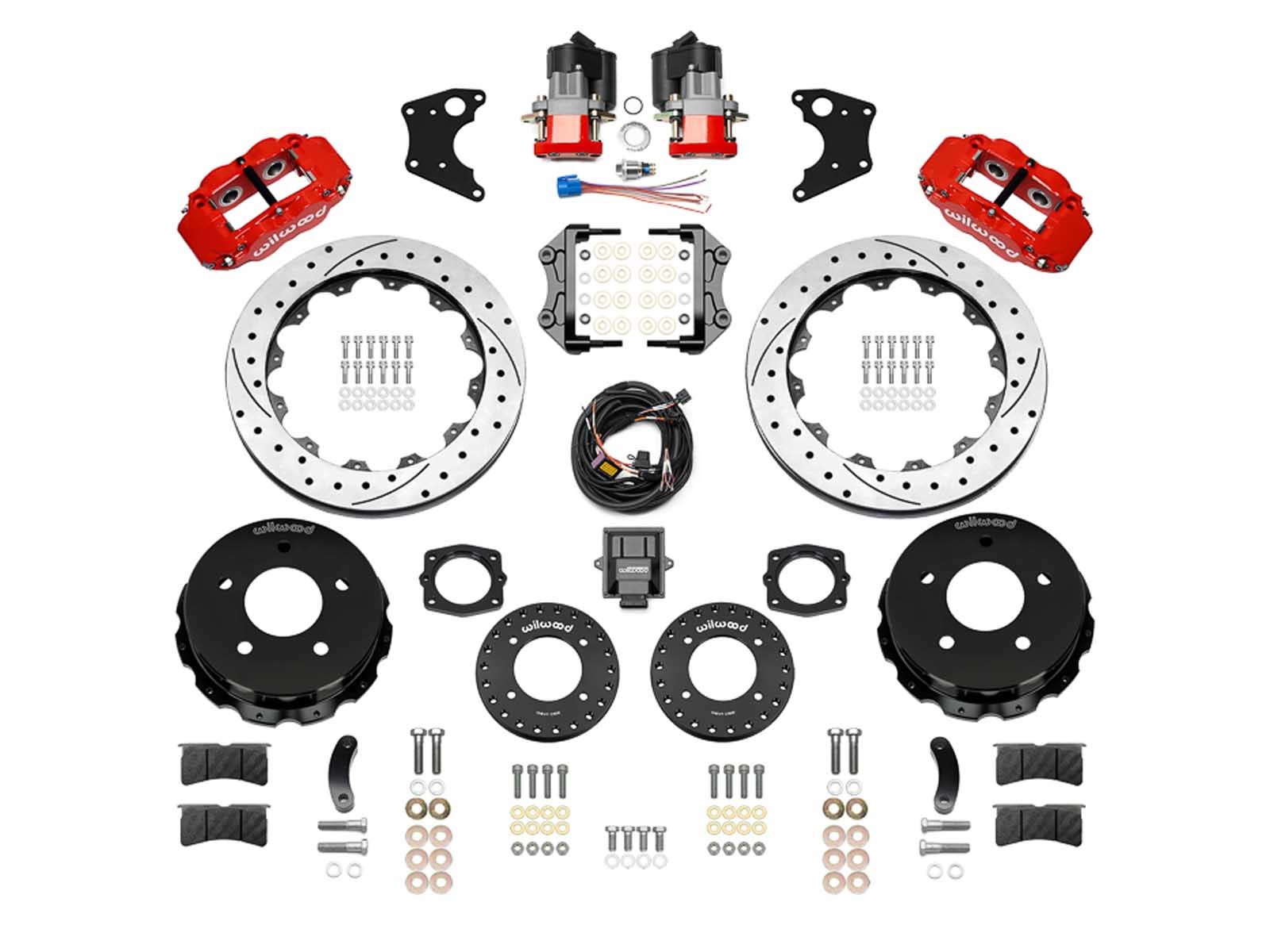 Wilwood Forged Narrow Superlite 4R Rear Electronic Parking Brake (EPB) Big Brake Kits from Accesspeed provide the ultimate Big Brake solution for popular muscle car rear axles that require a parking brake. FNSL4R four piston calipers, 12.88” two-piece rotors, and high-performance BP-10 compound pads provide optimized and balanced braking to compliment front big brake upgrades on all types of custom, show and high-performance street machines. The unique Electronic Parking Brake caliper provides a static high torque static holding power for parking without mechanical cabling. Supplied with control unit and harness assembly, it simplifies installation and use. Optional caliper finishes and rotor designs enable the builder to personalize the style and optimize brake performance for every individual application.