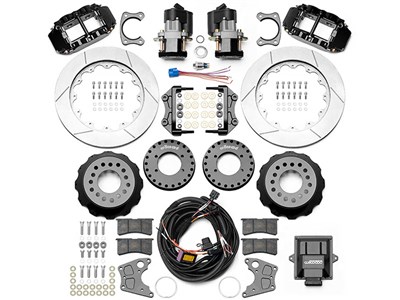 Wilwood Forged Narrow Superlite 4R Rear Electronic Parking Brake (EPB) Big Brake Kits from Accesspeed provide the ultimate Big Brake solution for popular muscle car rear axles that require a parking brake. FNSL4R four piston calipers, 12.88” two-piece rotors, and high-performance BP-10 compound pads provide optimized and balanced braking to compliment front big brake upgrades on all types of custom, show and high-performance street machines. The unique Electronic Parking Brake caliper provides a static high torque static holding power for parking without mechanical cabling. Supplied with control unit and harness assembly, it simplifies installation and use. Optional caliper finishes and rotor designs enable the builder to personalize the style and optimize brake performance for every individual application.