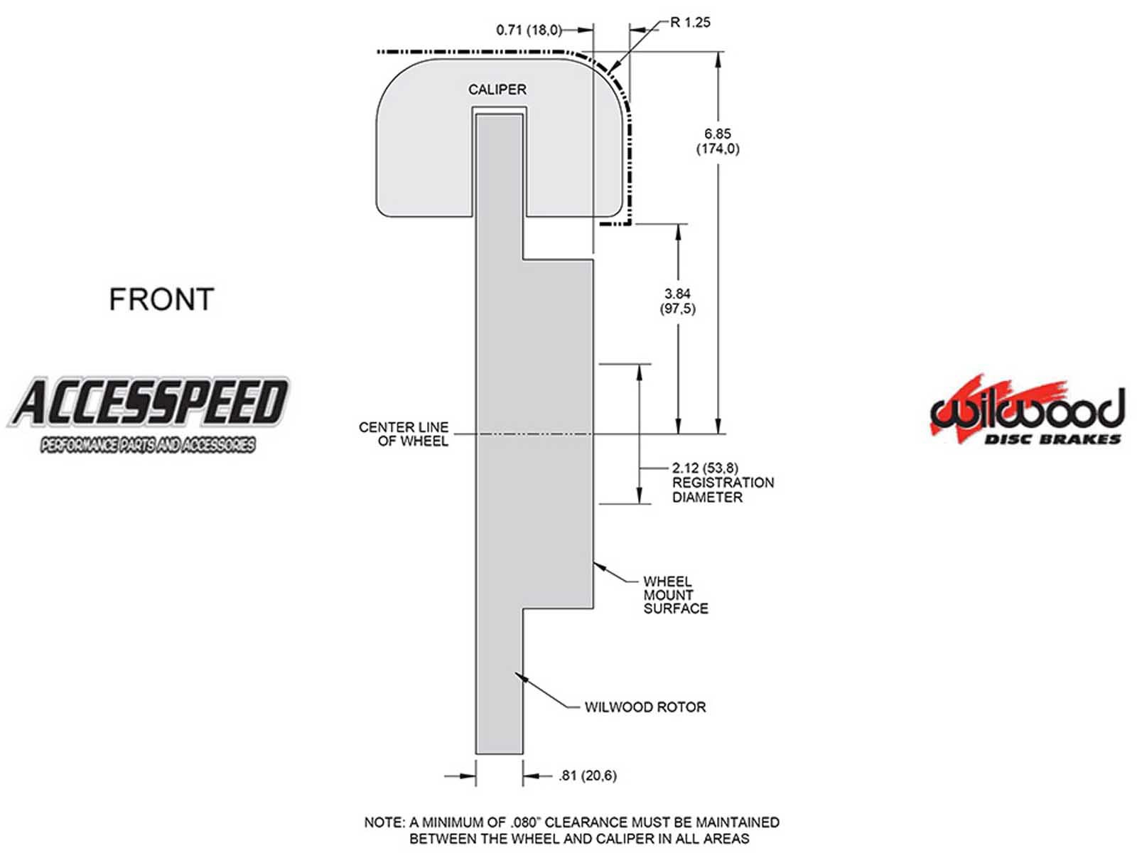 *This Brake Kit may require 15-inch or larger wheels. Please refer to the wheel clearance diagram image to verify caliper clearance for your specific wheel.