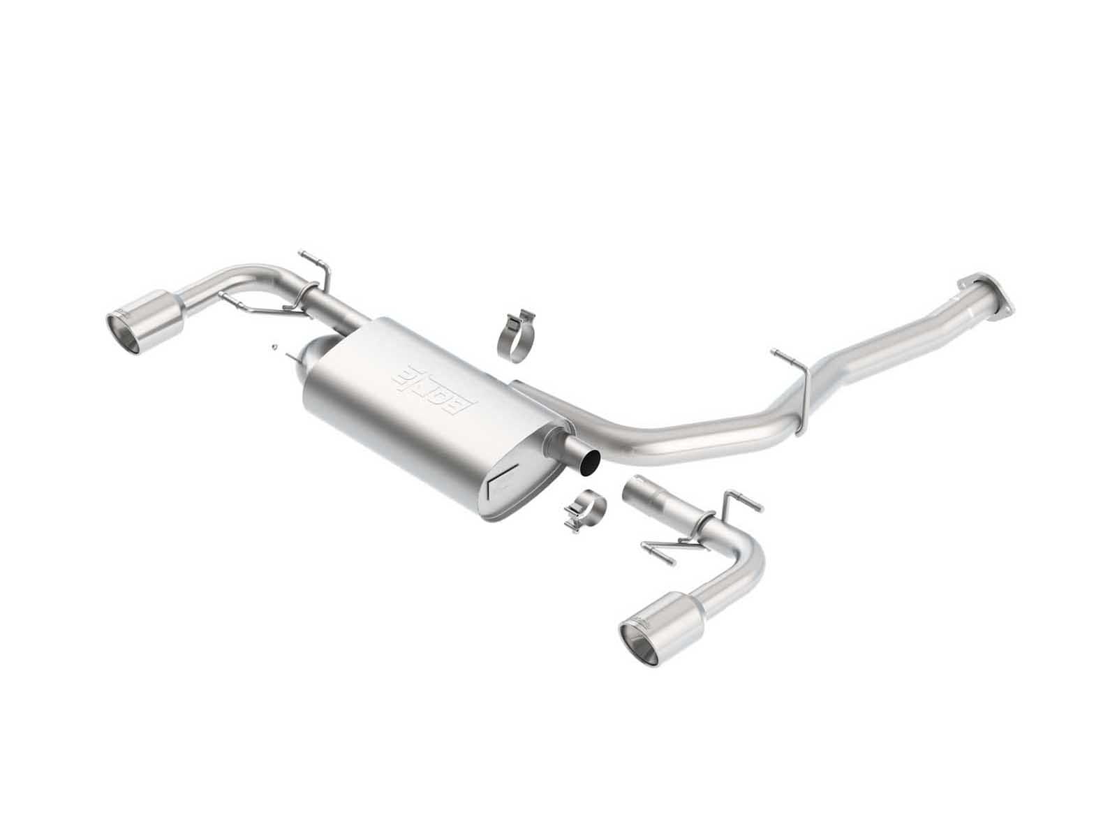 The Borla Touring Cat-Back Exhaust from Accesspeed delivers Borla’s European-Type mellow exhaust note that performance enthusiasts and autophiles have come to love. The Borla Cat-Back system is a direct bolt-on system for most vehicles and increases performance while improving sound. To ensure there is no compromise in comfort, this system delivers the mellow Touring sound with no drone inside the vehicle. Each system is built from premium high-quality austenitic T-304 stainless steel, superior to T-400 series knockoffs (such as 409), to give you the absolute best in performance and durability. Ultra-smooth mandrel bends ensure maximum flow & power, and precision computer numerical control (CNC) manufacturing ensures an accurate fit. Elevate your driving experience, bolt on a BORLA.