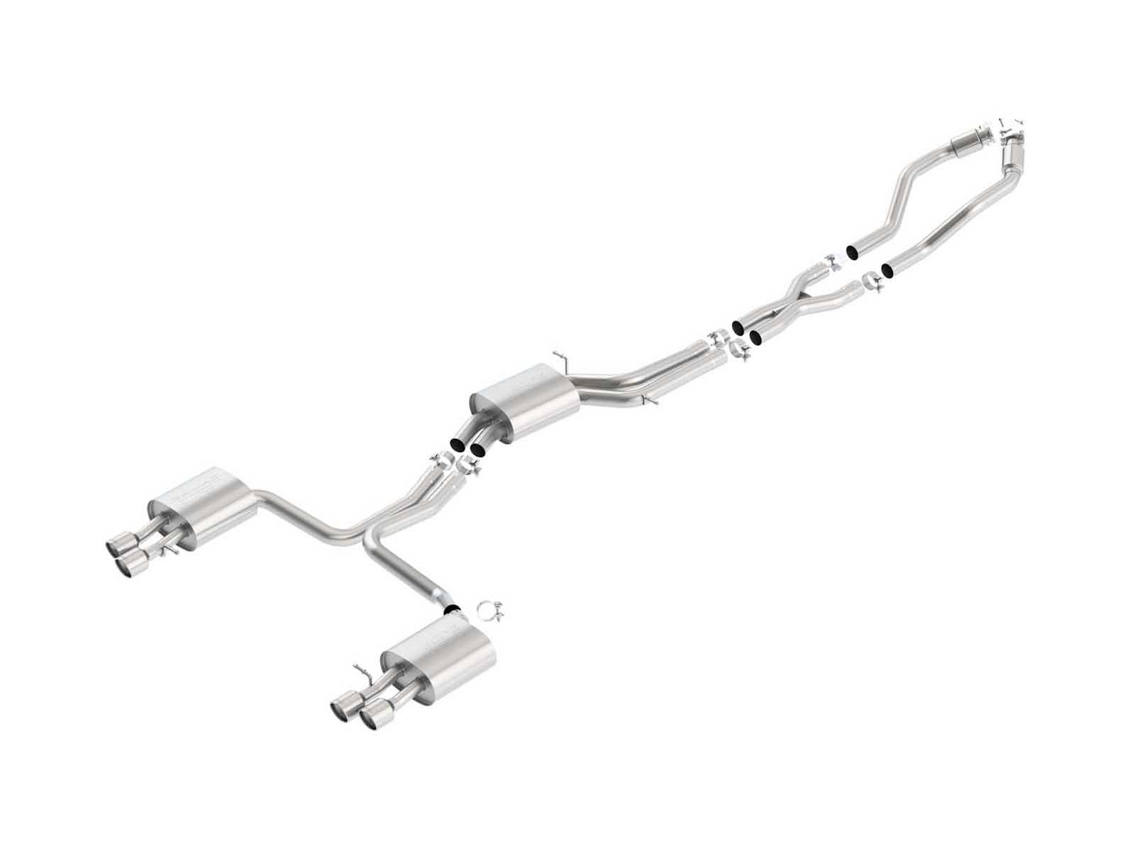 The Borla 2.5" S-Type Cat-Back Exhaust with X-Pipe from Accesspeed delivers the classic Borla growl that performance drivers have come to love. The Borla Cat-Back system is a direct bolt-on system for most vehicles and increases performance while improving sound. To ensure there is no compromise in comfort, each Borla S-Type Exhaust System features Borla’s No-Drone technology. Each system is built from premium high-quality austenitic T-304 stainless steel, superior to T-400 series knockoffs (such as 409), to give you the absolute best in performance and durability. Ultra-smooth mandrel bends ensure maximum flow & power, and precision computer numerical control (CNC) manufacturing ensures an accurate fit. Elevate your driving experience, bolt on a BORLA.