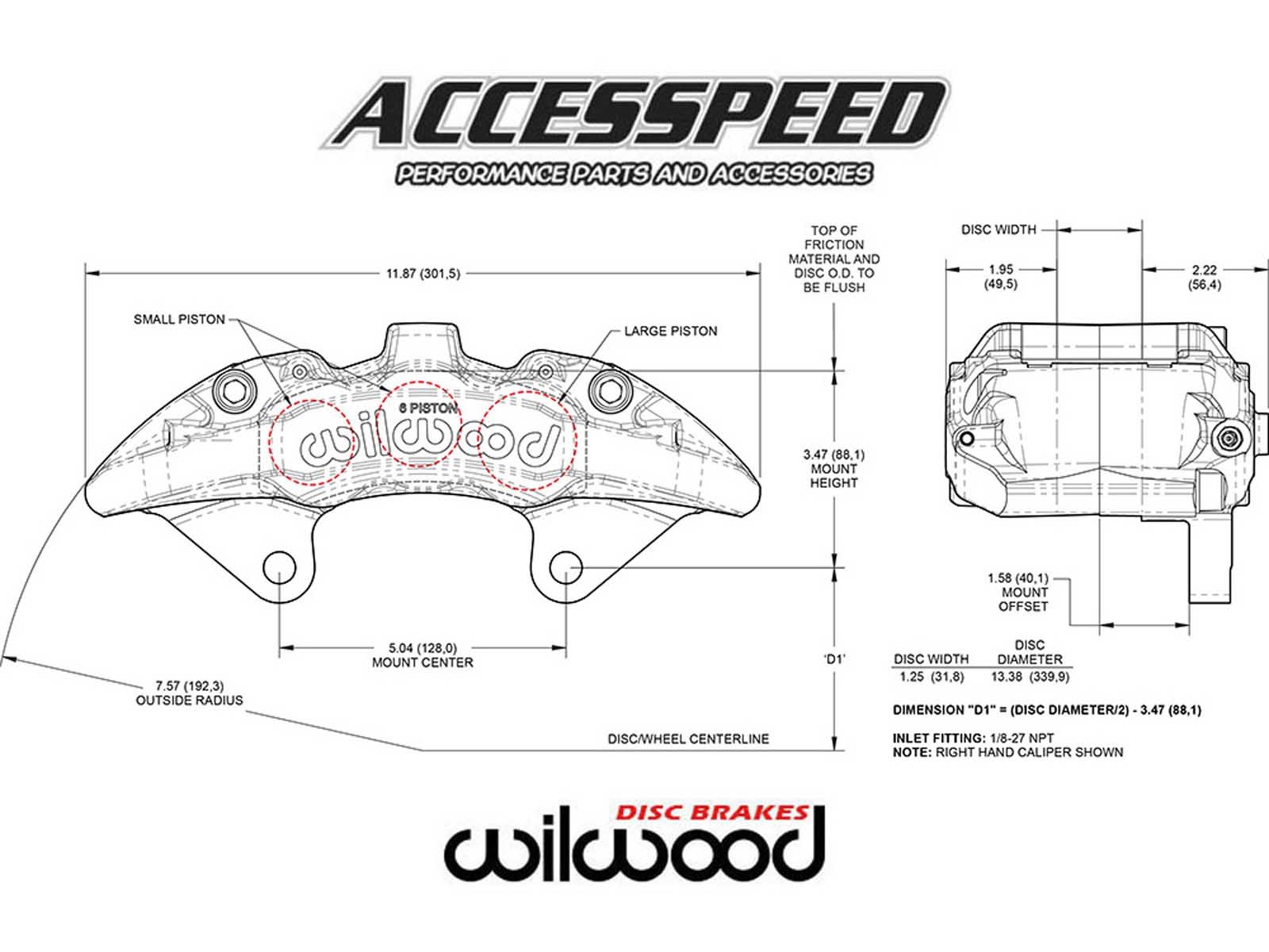 The new Wilwood AERO6-DM forged six-piston calipers from Accesspeed deliver heavy duty stopping power for the street and off road. The caliper incorporates race technology into a body design with widespread adaptability. With variable lug geometry the AERO6-DM offers direct spindle mounting with proprietary 13.38” diameter rotors on many late model trucks with multiple options for piston volume give this caliper the versatility necessary to suit all types of heavy weight braking requirements. The new AERO6-DM the latest innovation to the AERO4/6 series of calipers. It has been designed with internal fluid ports that eliminate the external fluid cross-over tubes and massive center bridge assembly for extra rigidity.