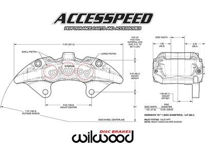 The new Wilwood AERO6-DM forged six-piston calipers from Accesspeed deliver heavy duty stopping power for the street and off road. The caliper incorporates race technology into a body design with widespread adaptability. With variable lug geometry the AERO6-DM offers direct spindle mounting with proprietary 13.38” diameter rotors on many late model trucks with multiple options for piston volume give this caliper the versatility necessary to suit all types of heavy weight braking requirements. The new AERO6-DM the latest innovation to the AERO4/6 series of calipers. It has been designed with internal fluid ports that eliminate the external fluid cross-over tubes and massive center bridge assembly for extra rigidity.