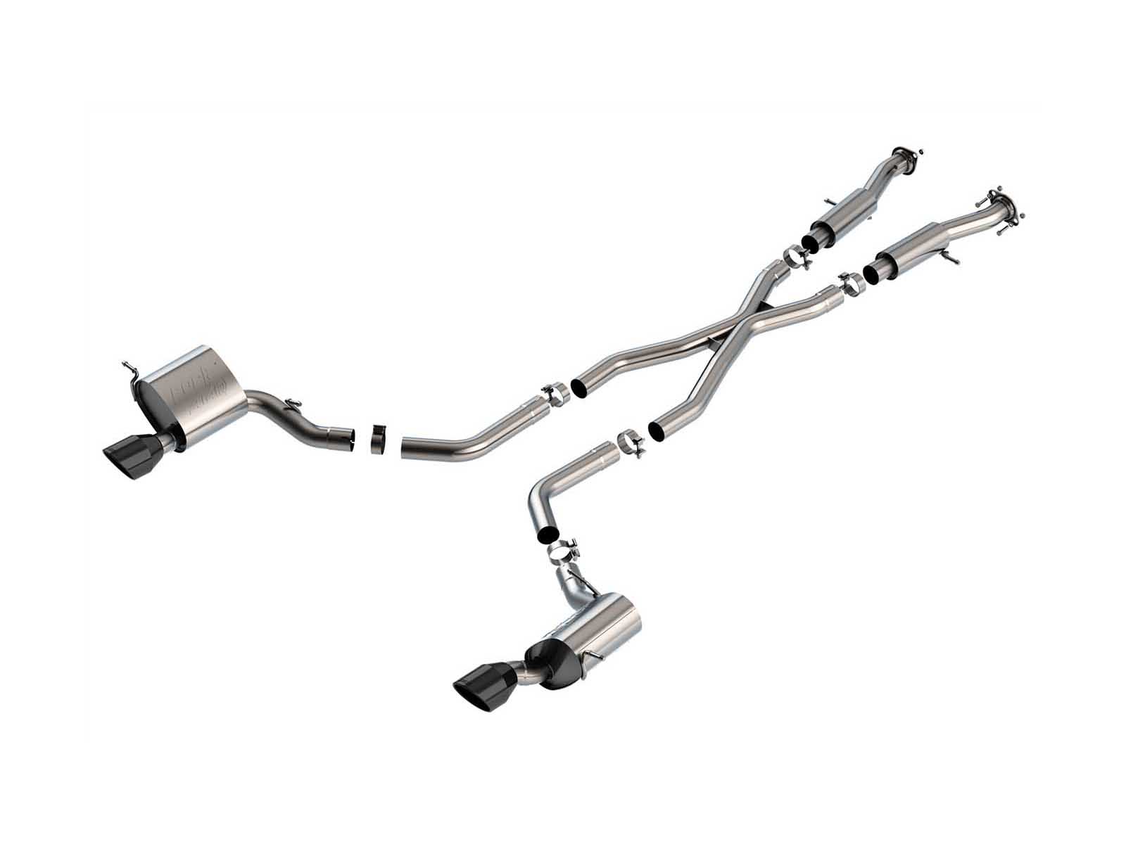 The Borla ATAK Cat-Back Exhaust with X-Pipe from Accesspeed delivers an aggressive, head-turning sound that truly does turns those heads. The Borla Cat-Back system is a direct bolt-on system for most vehicles and increases performance while improving sound. To ensure there is no compromise in comfort, each Borla ATAK Exhaust System features Borla’s No-Drone technology. Each system is built from premium high-quality austenitic T-304 stainless steel, superior to T-400 series knockoffs (such as 409), to give you the absolute best in performance and durability. Ultra-smooth mandrel bends ensure maximum flow & power, and precision computer numerical control (CNC) manufacturing ensures an accurate fit. Elevate your driving experience, bolt on a BORLA.