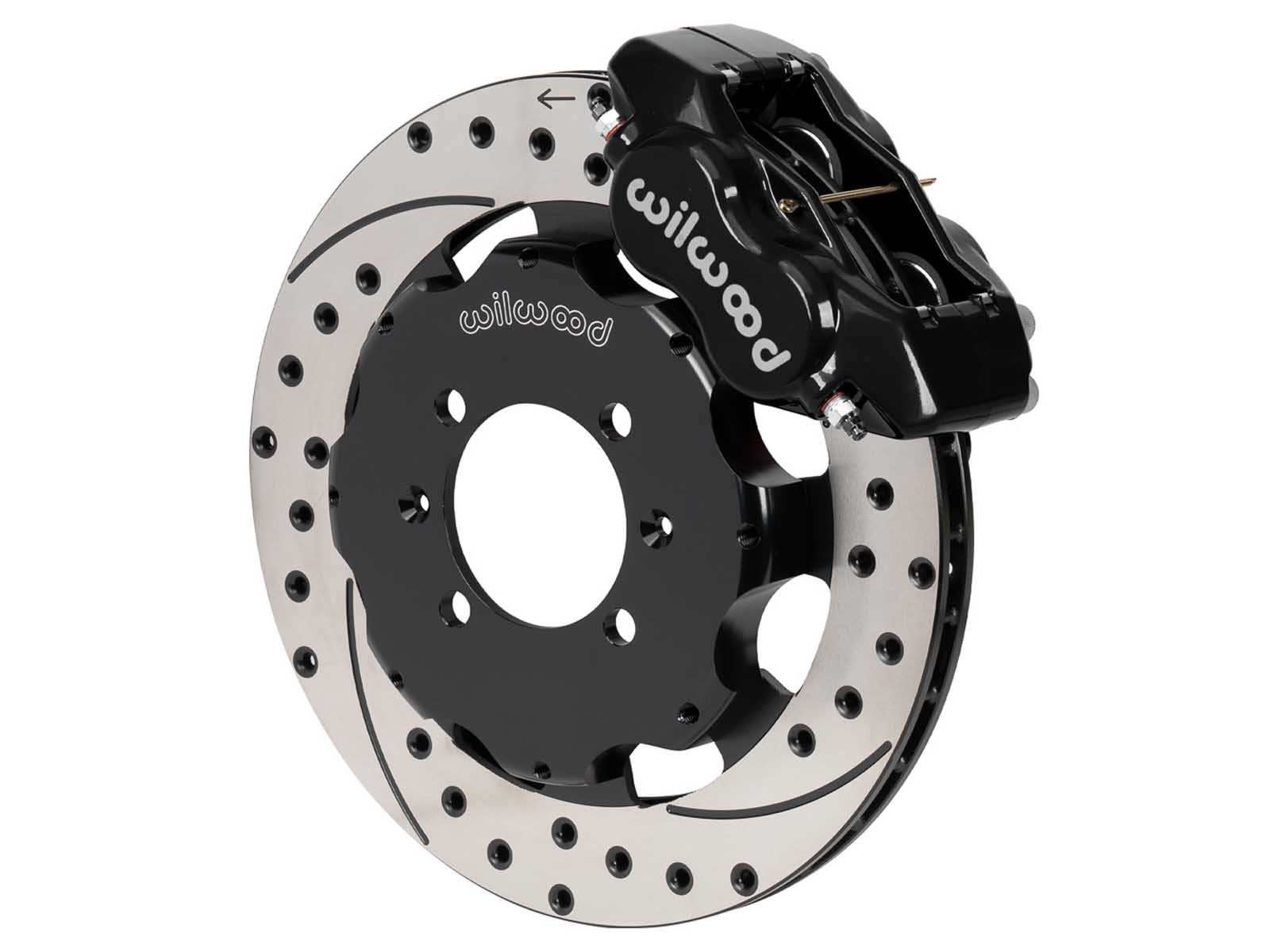 Wilwood Forged Dynalite Pro Series big brake kits from Accesspeed provide high performance, big brake stopping power by combining modern brake technology with high-tech styling to update the brakes on your compact sport vehicle. The OE calipers and rotors are replaced with forged aluminum, four-piston calipers mounted over larger diameter, certified alloy 30-vane 11.75-inch vented iron rotors. The new two-piece rotor assemblies provide weight-saving forged aluminum mounting hats. The calipers feature an increase in effective piston volume to deliver higher clamping power with less pedal effort than stock. The thicker, vented rotor design adds cooling efficiency and durability to extend service life. BP-series SmartPads add high-response with increased resistance to fade and longer wear over typical OE replacement pads. Options for caliper colors and rotor styles are available to personalize the look on any car. For on-track driving enthusiasts, additional track-only fortifications are available on a custom order basis by contacting the technical staff at the factory. Braided stainless steel Flexlines are included in this kit.