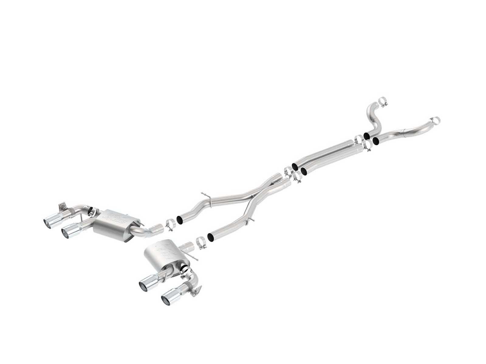 The Borla 3" ATAK Cat-Back Exhaust with X-Pipe from Accesspeed delivers an aggressive, head-turning sound that truly does turns those heads. The Borla Cat-Back system is a direct bolt-on system for most vehicles and increases performance while improving sound. To ensure there is no compromise in comfort, each Borla ATAK Exhaust System features Borla’s No-Drone technology. Each system is built from premium high-quality austenitic T-304 stainless steel, superior to T-400 series knockoffs (such as 409), to give you the absolute best in performance and durability. Ultra-smooth mandrel bends ensure maximum flow & power, and precision computer numerical control (CNC) manufacturing ensures an accurate fit. Elevate your driving experience, bolt on a BORLA.