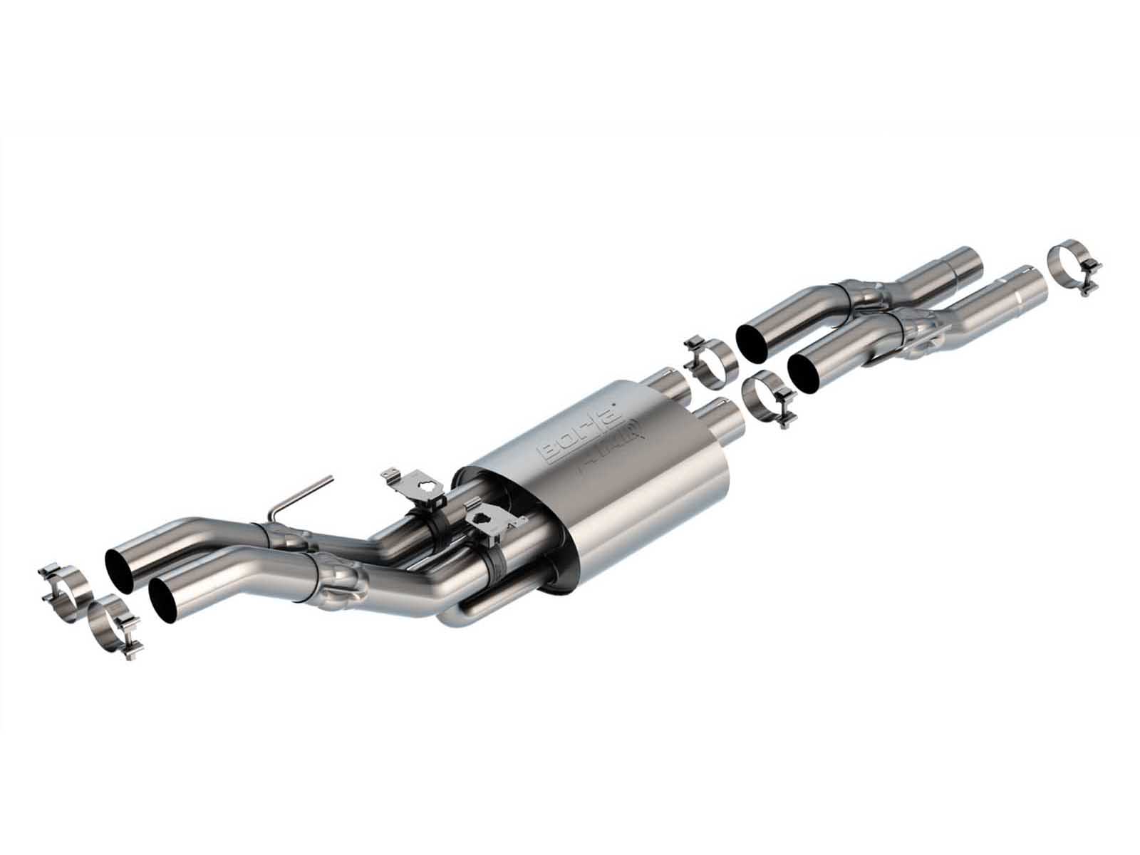 Built from premium T-304 stainless steel, superior to T-400 series (such as 409), this Borla exhaust product gives you the absolute best in performance and durability. Ultra-smooth mandrel bends ensure maximum flow & power, and precision computer numerical control (CNC) manufacturing ensures an accurate fit.