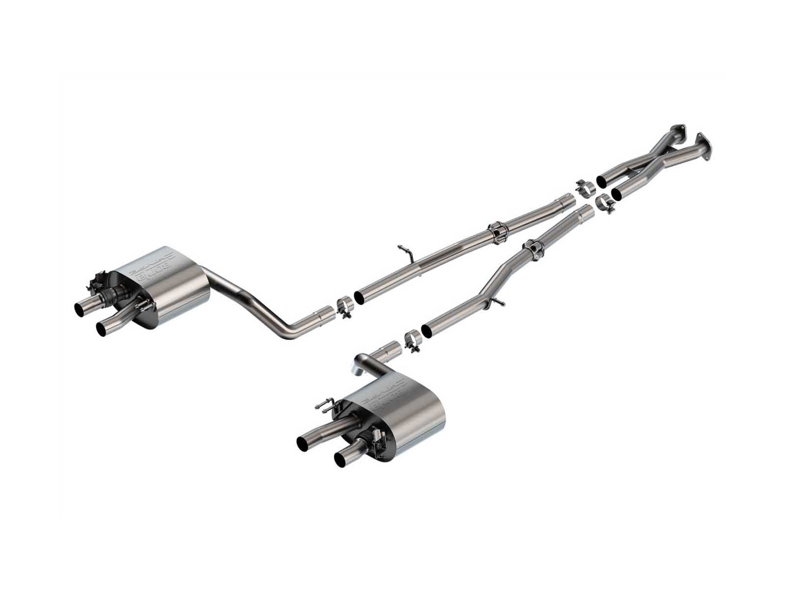 The Borla 2.725" S-Type Cat-Back Exhaust with X-Pipe from Accesspeed delivers the classic Borla growl that performance drivers have come to love. The Borla Cat-Back system is a direct bolt-on system for most vehicles and increases performance while improving sound. To ensure there is no compromise in comfort, each Borla S-Type Exhaust System features Borla’s No-Drone technology. Each system is built from premium high-quality austenitic T-304 stainless steel, superior to T-400 series knockoffs (such as 409), to give you the absolute best in performance and durability. Ultra-smooth mandrel bends ensure maximum flow & power, and precision computer numerical control (CNC) manufacturing ensures an accurate fit. Elevate your driving experience, bolt on a BORLA.