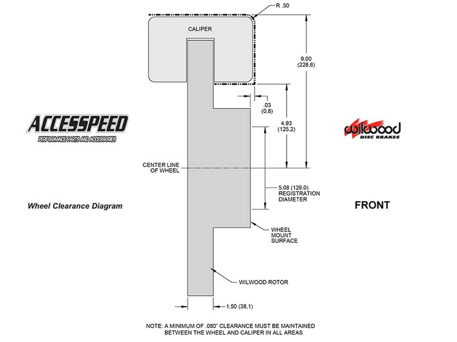 *This Brake Kit may require 20-inch or larger wheels. Please refer to the wheel clearance diagram image to verify caliper clearance for your specific wheel.