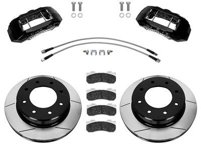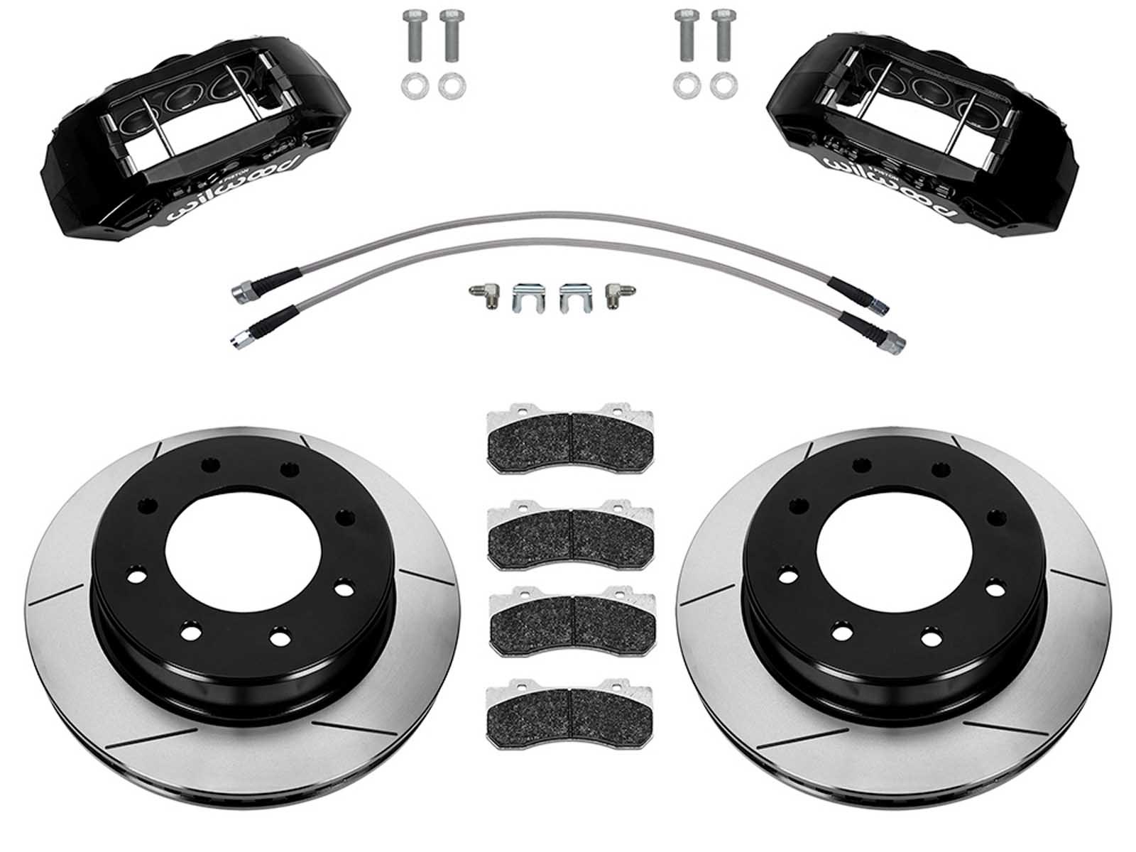 Wilwood Tactical Extreme TX6-DM Big Brake Kits from Accesspeed are ultimate in braking performance for Truck, SUV and Armored Vehicles. Using TX6-DM direct mount six-piston calipers and massive 15-inch GT slotted alloy rotors, these kits deliver consistent stopping power and extreme duty durability under sustained high heat with this ready to bolt-on kit. The calipers are volume matched for compatibility with original equipment power brake system output. Kits include all the necessary hardware to complete the installation. Braided stainless steel Flexlines are included in this kit.