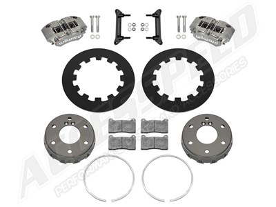 Large 11.25” (285mm) steel rotors improve thermal capacity, are black E-coated and are available with a plain face or drilled options. Calipers are available in glossy red or black powder coat or 28 additional color options (additional charges apply). Wilwood’s high-performance BP-10 SmartPads come standard, while race-spec kits feature BP-28 pads and calipers finished in Type III hard anodize.