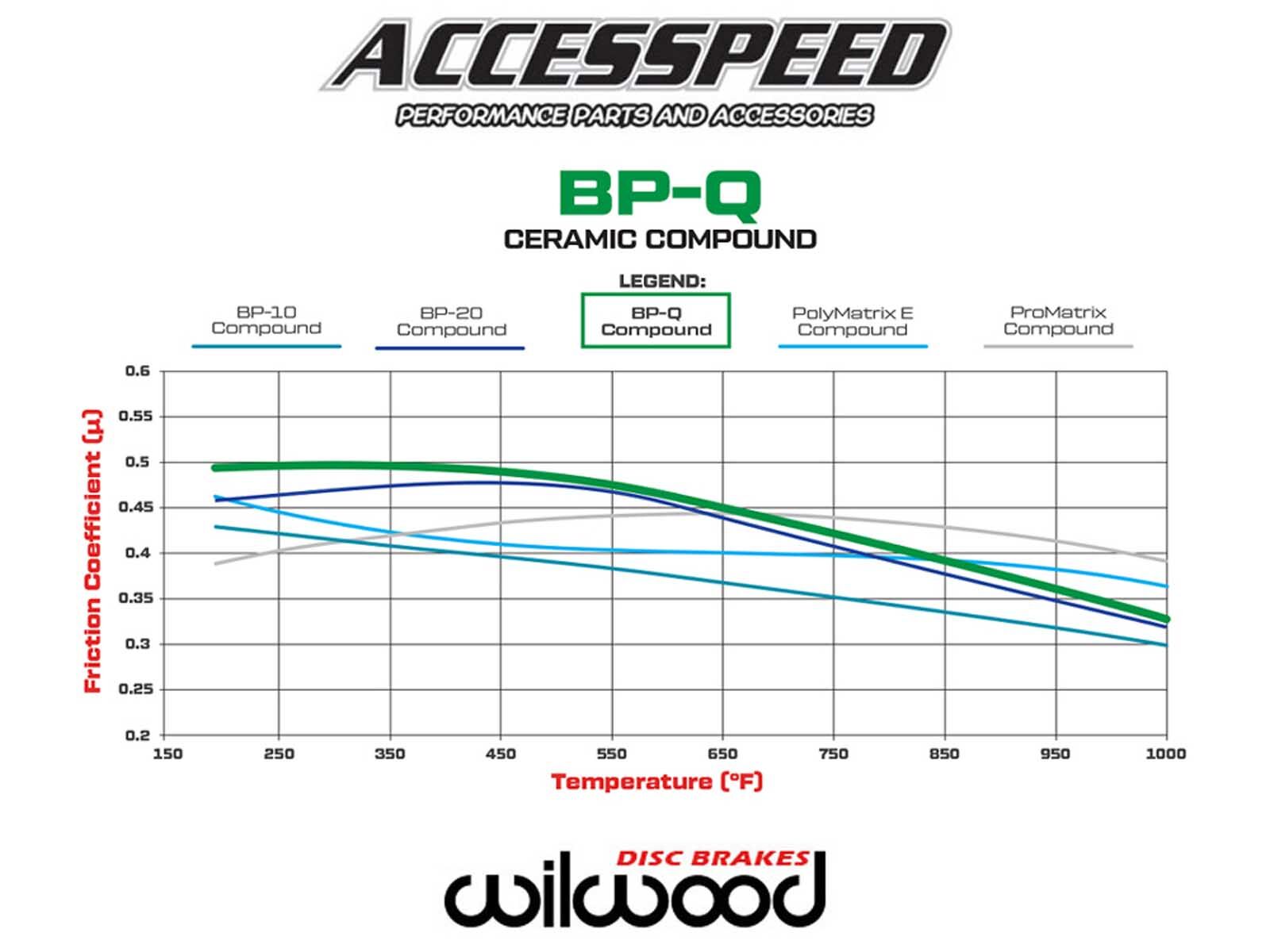 SmartPad BP-Q ceramic-based, dual-sport compound provides smooth response and is engineered with medium friction and fade resistance for everyday street or high-demand driving. The BP-Q is a true dual-sport performance compound providing clean and quiet driving on the street, with an expanded temperature and friction range when you need it. This is the ideal pad compound for Wilwood bolt-on brake kits for street use, muscle cars, trucks, SUVs and Jeeps. Accesspeed has found this Wilwood BP-Q SmartPad features a smooth initial response, low wear rate at low temperatures, high performance ceramic-based formula, and the lowest dust and noise. These brake pads are now available in the pad plates used with most Wilwood big brake kit calipers and other caliper brands using common pad plate shapes.