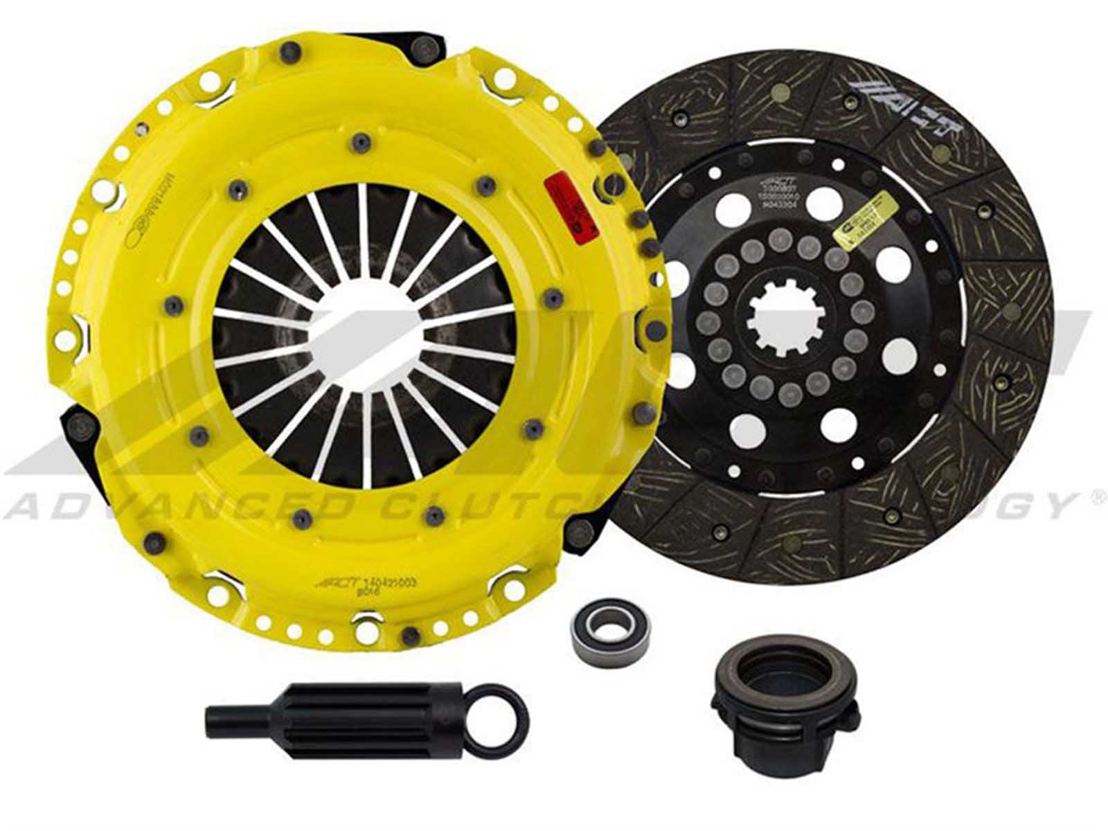 BM9-HDSD kit features ACT's most popular Heavy Duty pressure plate. ACT Heavy Duty pressure plates use exclusive diaphragm design to increase clamp load, reduce deflection and maximize clutch life. All diaphragms endure a four-stage, heat-treating process for unparalleled performance. ACT pressure plates have precision cover stampings to provide rigidity and consistency. The ACT performance street rigid-hub discs feature premium organic materials with high copper content for better heat transfer and steel-backed lining for greater burst strength and durability. The chrome-moly hub is heat-treated for strength and durability. Rivet design and materials are carefully selected for maximum strength. These discs are the minimum weight street disc for faster shifts. ACT’s street rigid-hub discs provide race-proven performance with street manageability.