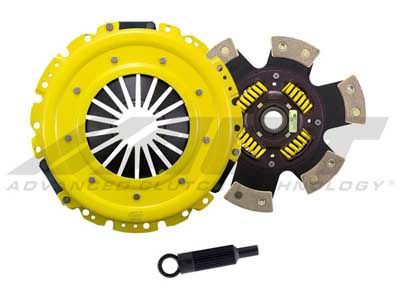 FM5-SPG6 kit features a Sport pressure plate for a nice upgrade. ACT Sport pressure plates use exclusive diaphragm design to increase clamp load, reduce deflection and maximize clutch life. All diaphragms endure a four-stage, heat-treating process for unparalleled performance. ACT pressure plates have precision cover stampings to provide rigidity and consistency. ACT’s 6-pad, spring-centered race disc features a spring-center construction to properly damp torsional vibrations and resist failure under harsh conditions. ACT spring retainers utilize wraparound spring windows and thicker retainer stampings to provide spring support, reduce stress concentrations, and increase strength and reliability. With the 6-pad, spring-centered race disc, engagement is harsher, but shifting is faster. The 6-pad, spring-centered disc is recommended for larger clutch sizes to absorb more heat.