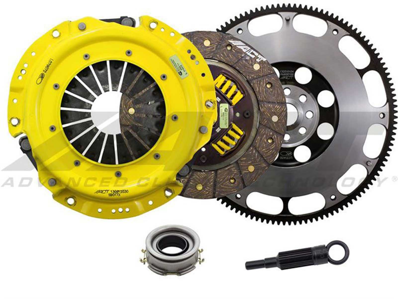 SB8-XTSS kit features an Xtreme pressure plate for the most demanding driver. ACT Xtreme pressure plates use exclusive diaphragm design to increase clamp load, reduce deflection and maximize clutch life. All diaphragms endure a four-stage, heat-treating process for unparalleled performance. ACT pressure plates have precision cover stampings to provide rigidity and consistency. ACT’s Performance street discs are the most popular disc purchased. They feature premium organic materials with high copper content for better heat transfer and steel-backed lining for greater burst strength and durability. These discs have reduced marcel for faster shift action to complement ACT pressure plates. Quiet operation with increased strength and reliability.