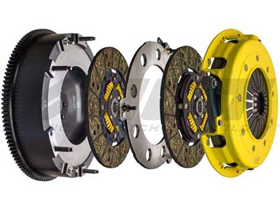 T1S-F01 street, twin disc kit offers twice the number of disc surfaces for better wear, heat capacity and long life compared to single disc kits. These kits use a proprietary Positive Lift Floater System design, which results in quiet operation with no floater rattle and no posts to wear. ACT twin disc kits endure an exclusive four-stage, heat-treating process on all diaphragms. The ACT twin disc kits features the ability to adjust for disc wear and provides equal disengagement for discs. The Performance street rigid-hub discs feature premium organic materials with high copper content for better heat transfer and steel-backed lining for greater burst strength and durability. The chrome-moly hub is heat-treated for strength and durability. Rivet design and materials are carefully selected for maximum strength. All ACT twin disc kits include a CNC-machined and dynamically balanced flywheel to ensure trouble-free installation and operation. ACT twin disc kits include a pressure plate, two discs, a floater, flywheel and alignment tool. Some kits may include a pilot bearing and release bearing.