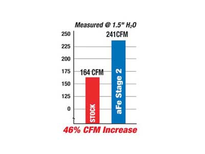 This Stage-2 cold air intake system produces 14hp and 17lbs. x ft. torque and outflows the factory intake by 46%. Enclosed in a durable 18 gauge, powder-coated heat shield; this air intake system features a washable/reusable conical air filter that improves airflow for increased horsepower and torque. This intake system also features a heat-insulating molded plastic tube that replaces the stock intake tract attached to a 3-angle adaptor with a built in mass air flow sensor pad that directs increased air flow with improved volumetric efficiency for maximum performance. One-piece heat shield requires little or no assembly and the filter is constructed with 100% polyurethane for long life and multiple cleaning cycles.
