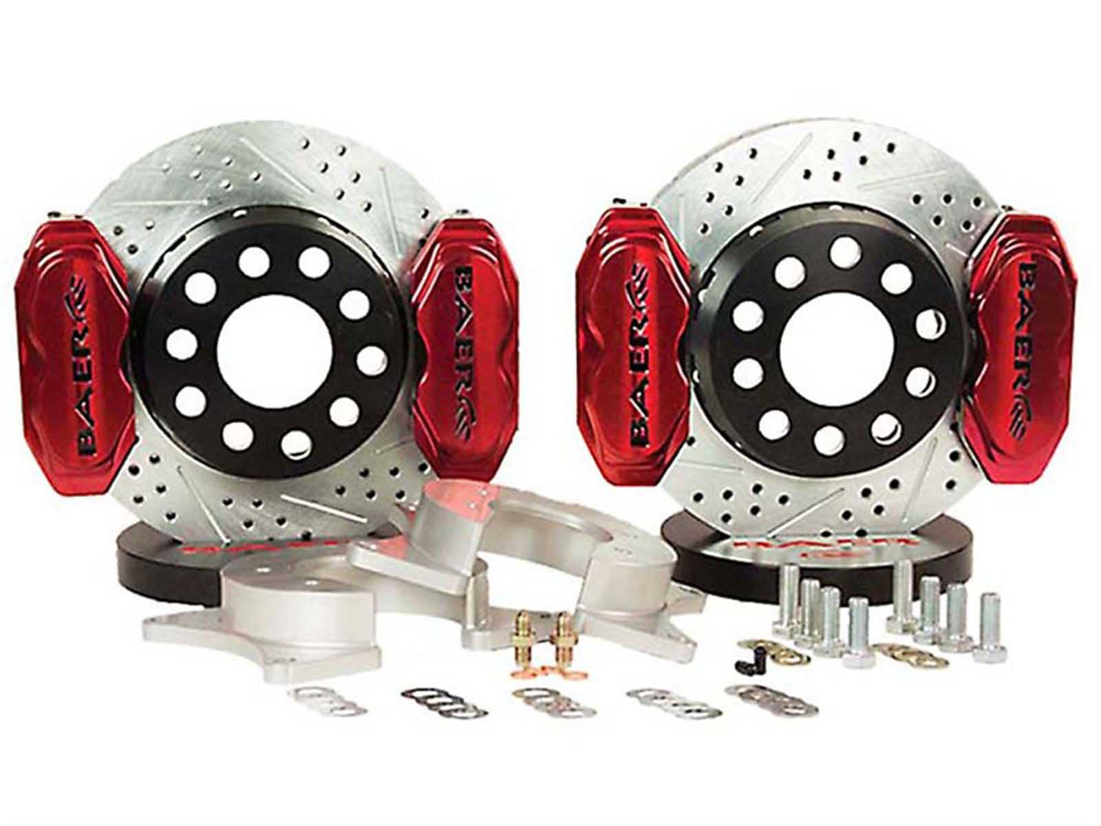 These Baer Rear Big Brake Kits from Accesspeed can be used alone or matched with one of Baer’s front brake system offerings. If a parking brake is not a concern, a number of the fixed bearing rear ends (NON c-clip), Ford 9”, 10/12 bolt with a 3.150 bearing, the SS4+ 11” rear is an option that will cosmetically match the front. If you are looking for a parking brake, check out the SS4 rear, this features a 12” 1-piece rotor (larger and 1-piece due to a drum in hat park brake). The SS4+ 13” rear is a great option for a customer looking at the Pro+ or Extreme+ front that doesn’t need or want that big of a brake on the rear.