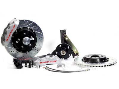 The Baer Pro+ Front Big Brake Kit from Accesspeed is Baer’s best-selling brake system! The front kits include a 6-piston caliper and a 13” or 14” diameter 2-piece rotor. Baer’s Pro system is identical to the Pro+ except that it includes a 1-piece rotor instead of a 2-piece. Both systems will allow you to have the exact same looking brake front and rear. The Pro+ is Baer’s intermediate 6-piston caliper. Compared to the Extreme (6S), it is a slightly smaller 2-piece caliper design and uses a slightly smaller pad. The Pro+ is a great choice, at a more affordable price, and is also available in a complete cosmetically matching rear like the Extreme+. In c-clip applications, Baer’s patent pending Verislide self-centering brackets provide the only proper engineering solution to mounting opposed piston calipers on c-clip bearing-in-housing style axles. Baer also staggers the rear piston size (like the front) to correctly minimize pad taper issues.