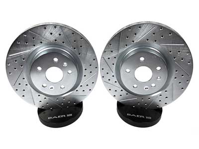 Baer Premium direct replacement rotors are cross-drilled and slotted, with a zinc-plated surface (SDZ) that delivers brilliant performance and appearance. Ever-increasing wheel diameters and open-spoke designs have made brakes in integral part of vehicle performance AND styling. Baer sport rotors offer state of the art performance solutions for this styling and performance need.