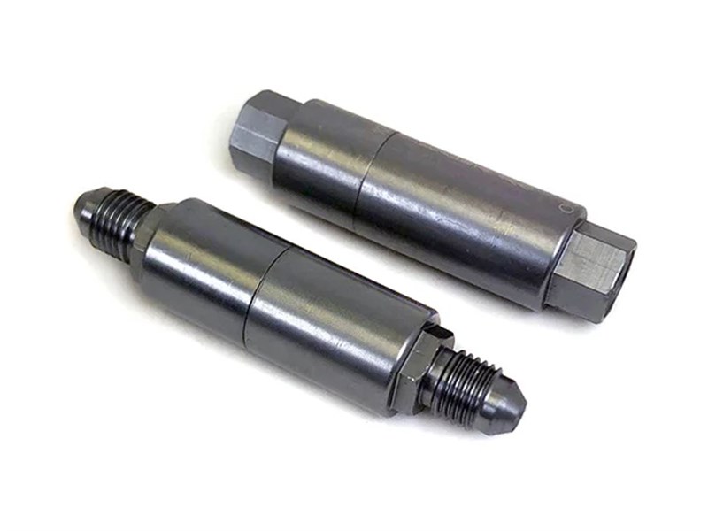 Baer's residual pressure valves from Accesspeed are designed to retain a small amount of line pressure needed in certain situations. The 2-pound valves are used in each circuit of a disc brake system when the master cylinder is mounted below the calipers preventing fluid drain back which can lead to excessive pedal travel. The 10-pound valves are used in each circuit of a drum brake system keeping a small amount of line pressure present to offset negative pressures that can be generated in the wheel cylinders when the brakes are released due to the high tension of the brake shoe return springs.