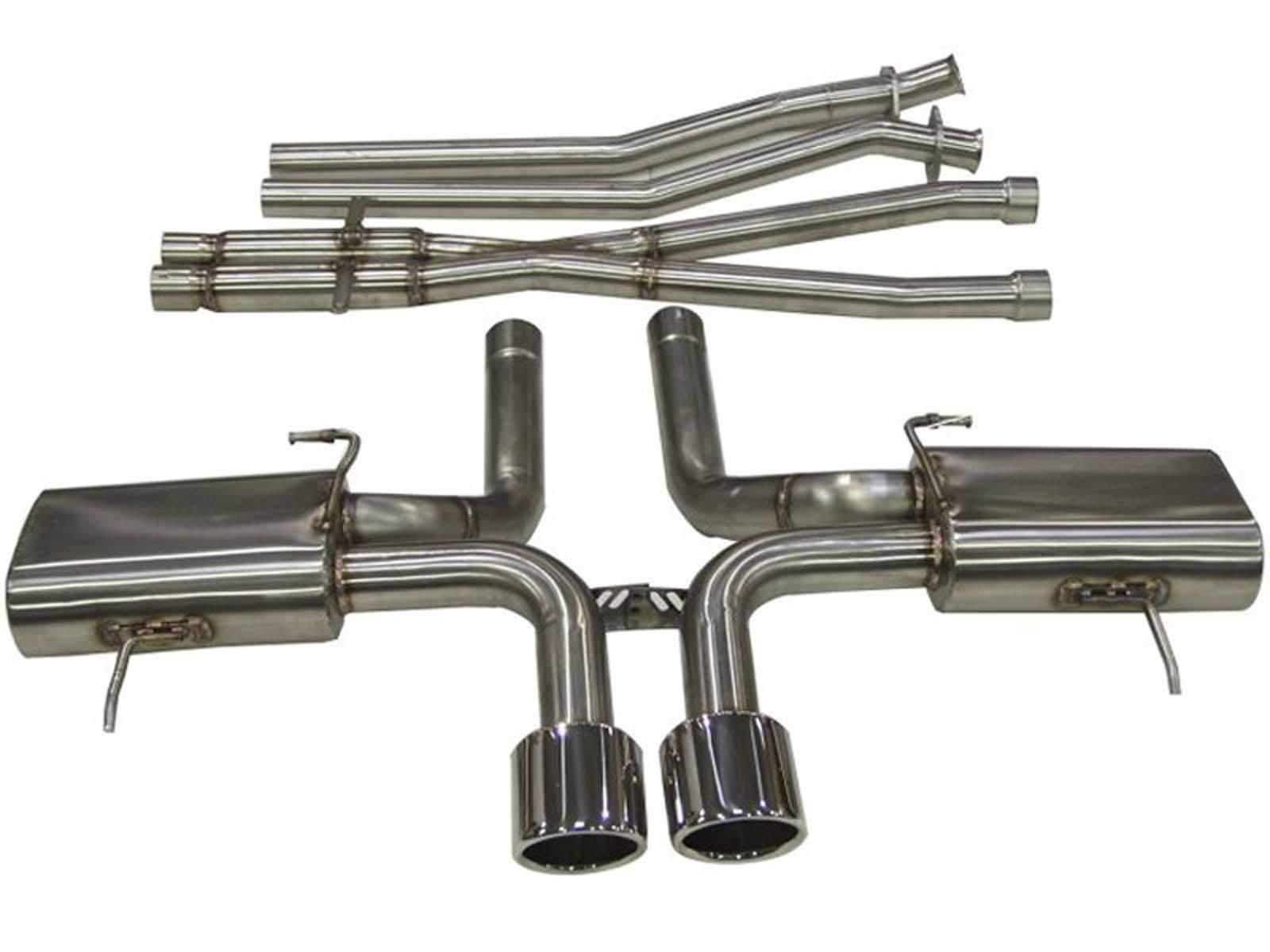 BBE FDOM-0325 Cat Back with X-Pipe, 4-1/4" Twin Round Double-Wall Tips for 2011-2015 Cadillac CTS-V Coupe