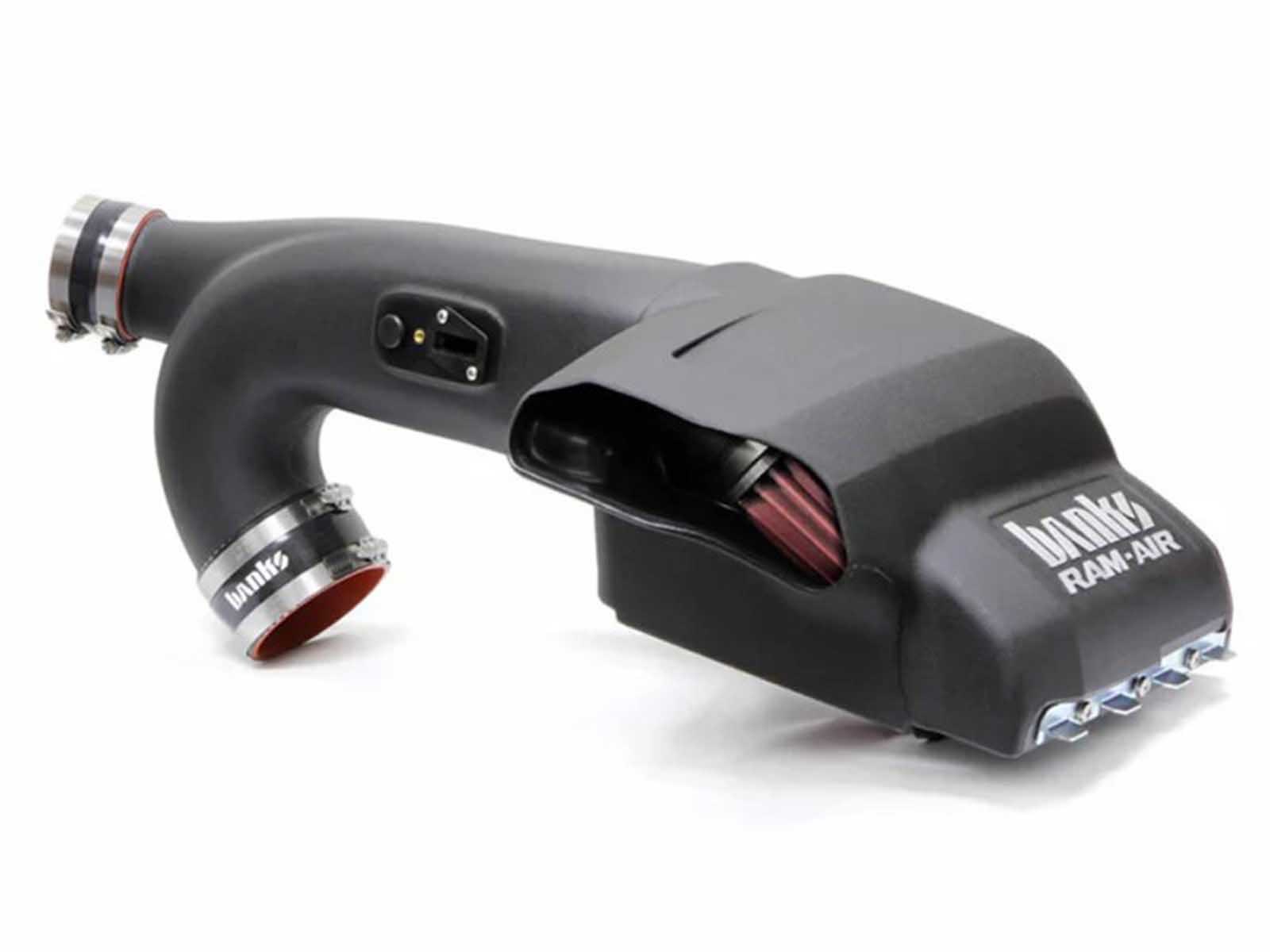 Banks opens up your truck's breathing with a flowbench-developed and dyno-proven Ram-Air Intake System that is 64.6% less restrictive than stock on the 3.5L at 600 CFM. Ram-Air's filter has a huge outlet with deep filter pleats that maximize flow and a complete air filter housing that draws in cooler, denser air to the engine for greater power and fuel economy.