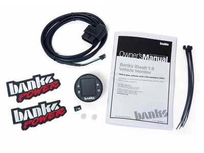 Banks iDash is the smallest, most powerful plug-n-play OBD-II monitor and control interface on the market. With its easy to read 2- to 8-gauge user-selectable LCD display, the iDash reads a multitude of engine parameters and internal data directly from the vehicle's ECM via OBD-II. It also opens a whole new world of Banks' exclusive calculated parameters not available on any other device. Set custom low and high alerts for any engine parameter. Monitor max and min values for a user-selectable list of parameters. Read and clear trouble codes on-the-fly. Customize the navigation button and LCD display colors, brightness, and even the rate at which they dim at night.