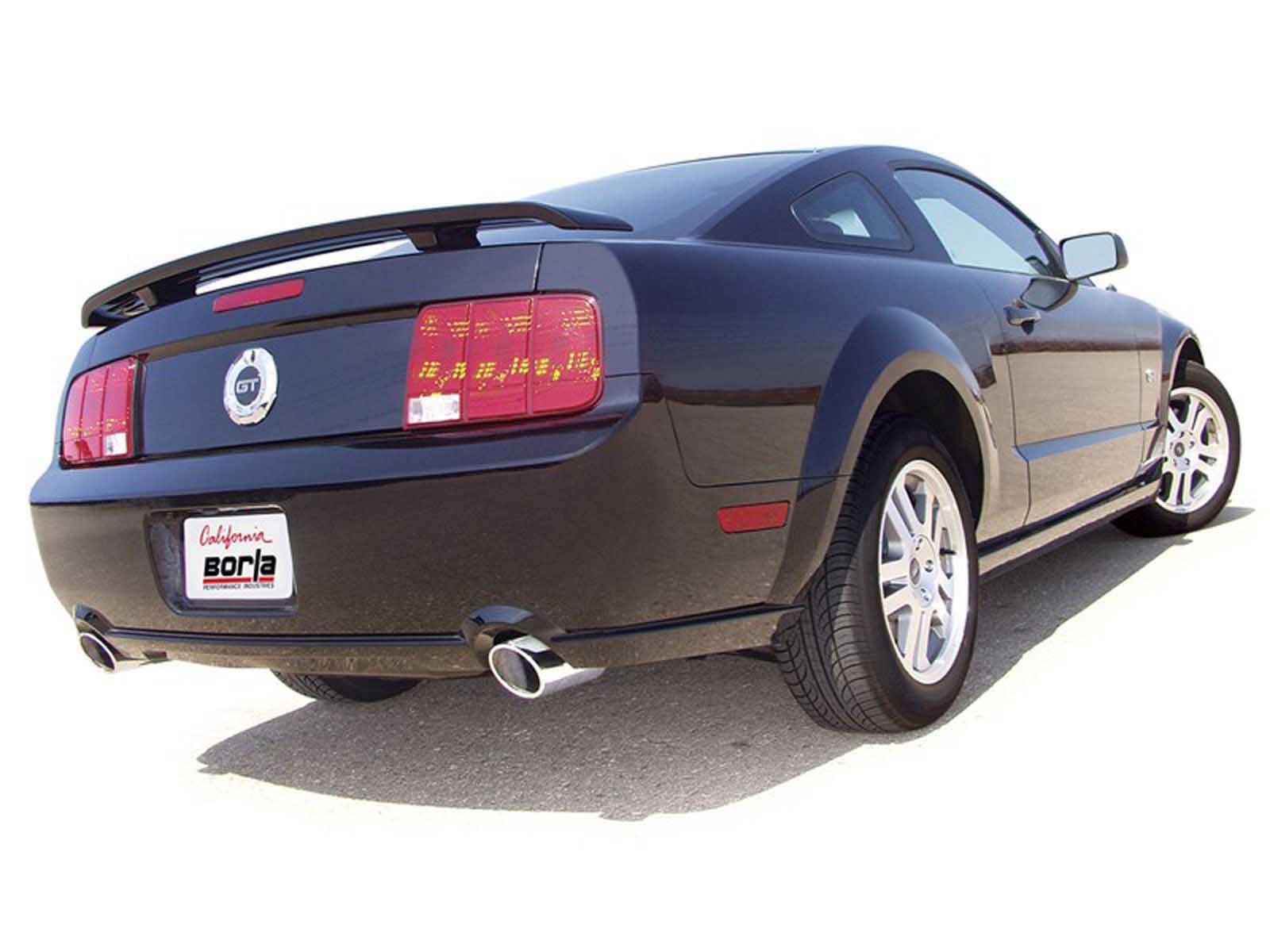 For nearly 3 decades, Borla Exhaust has been the choice of Mustang experts, from the Cobra-R SVT Mustang to the new Ford GT. Major players in the racing industry and leading tuners from Roush, Steeda, Saleen and Ford Racing to the Shelby 427 Cobra have relied on BORLA. And, when the ’05 Mustang was first being reviewed, BORLA was already busy designing an awesome new Cat-Back™ system that bolts behind the factory H-pipe, is lighter than the factory system and includes our famous “S” Style mufflers (PN 140135). BORLA experience and advance engineering have produced a sexy new “S” Style exhaust with outstanding flow numbers that generate great power enhancements. These attributes, coupled with an aggressive sound of power and awesome big tip, proclaim this Stang is all business. Airflow management and exhaust engineering is a science with which BORLA has more experience than anyone in the exhaust aftermarket. The performance matches the famous BORLA systems of the past but with a unique muffler and exhaust configuration canceling additional high frequency sound waves. Delivering a significant increase in CFM from the factory system which, as most engine builders will confirm, accounts for the dramatic power improvements. Perhaps more importantly, this added flow maximizes performance for other aftermarket enhancements installed on the Mustang because all BORLA exhaust products are tuned for maximum output from any aftermarket performance upgrade. Two rear section options are also available: an aggressive “S” Style rear exhaust section (PN 11750) and a more mellow rear section (PN 11752) – both replace only the over-the-axel pipes, mufflers and tips. BORLA, the original pioneers of aerospace-grade high quality austenitic stainless steel (superior to 409 or aluminized steel) free-flow exhaust utilizes patented award and race winning technology to deliver quality, sound, performance gains and enhanced fuel economy – all with an easy bolt-on installation. Unsurpassed written Million-Mile Warranty.