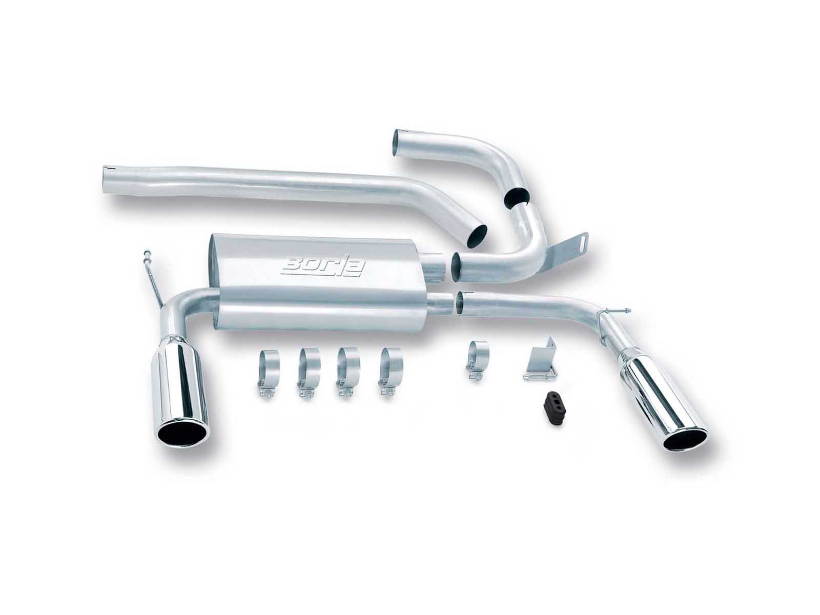 BORLA Cat-Back™ exhausts feature patented straight-through and multi-core technology to unleash hidden horsepower. Increased exhaust velocity adds power, driving excitement, fuel economy and the distinctive BORLA Sound of Power respected by motoring enthusiasts everywhere. Each system is built from premium Aircraft-Quality T-304 Stainless Steel, an alloy superior to T-400 series knockoffs, to give you the absolute best in performance and durability. Ultra-smooth mandrel bends ensure maximum flow and power, and precision computer-controlled CNC manufacturing ensures an accurate fit. Best of all, BORLA stands behind every system with a Million-Mile Warranty. Just what you'd expect from the world's most experienced (and most winning) exhaust brand. Includes Single Round Rolled Angle-Cut Tips.