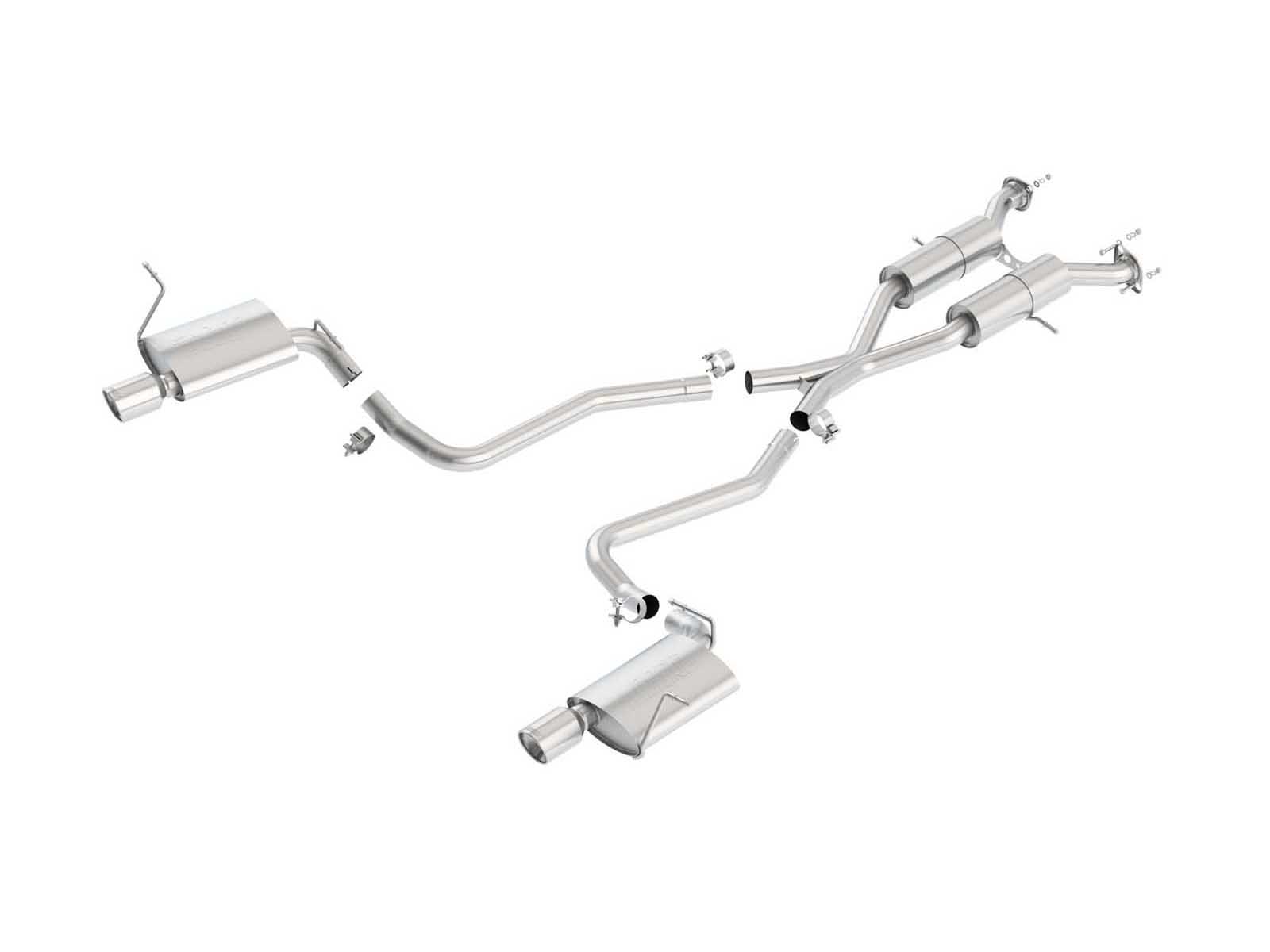 The Borla Touring Cat-Back Exhaust with X-Pipe from Accesspeed delivers Borla’s European-Type mellow exhaust note that performance enthusiasts and autophiles have come to love. The Borla Cat-Back system is a direct bolt-on system for most vehicles and increases performance while improving sound. To ensure there is no compromise in comfort, this system delivers the mellow Touring sound with no drone inside the vehicle. Each system is built from premium high-quality austenitic T-304 stainless steel, superior to T-400 series knockoffs (such as 409), to give you the absolute best in performance and durability. Ultra-smooth mandrel bends ensure maximum flow & power, and precision computer numerical control (CNC) manufacturing ensures an accurate fit. Elevate your driving experience, bolt on a BORLA.