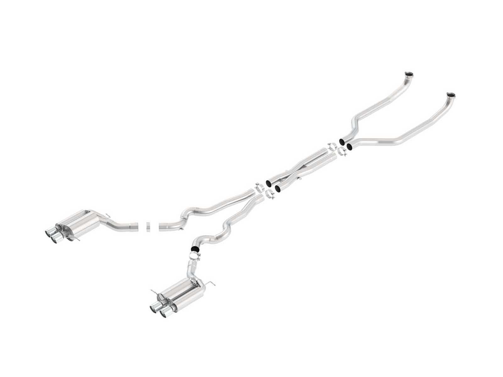 The Borla 2.725" S-Type Cat-Back Exhaust with X-Pipe from Accesspeed delivers the classic Borla growl that performance drivers have come to love. The Borla Cat-Back system is a direct bolt-on system for most vehicles and increases performance while improving sound. To ensure there is no compromise in comfort, each Borla S-Type Exhaust System features Borla’s No-Drone technology. Each system is built from premium high-quality austenitic T-304 stainless steel, superior to T-400 series knockoffs (such as 409), to give you the absolute best in performance and durability. Ultra-smooth mandrel bends ensure maximum flow & power, and precision computer numerical control (CNC) manufacturing ensures an accurate fit. Elevate your driving experience, bolt on a BORLA.