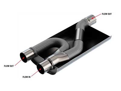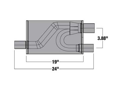 Borla Transverse Flow mufflers from Accesspeed were originally designed for GM F-Body Camaros and Firebirds. On these vehicles, they were mounted behind the rear axle and were parallel to the axle. This muffler can also be used to create custom systems on other vehicles. Single 2.5" Offset Inlet/ Dual 2.5" Offset Outlets. The inlet and one outlet are on one end of the muffler, and the second outlet is on the opposite end. Notched necks for clamp-on installation using 1" wide band style clamps (clamps not included). Reversible design for installation flexibility. High-quality T-304 austenitic stainless steel will never rust. 100% welded construction for strength. Free Flow design for improved performance. High-temperature continuous filament fiber (CFF) acoustic material for sound control. Natural mill finish can be brushed or polished prior to installation.