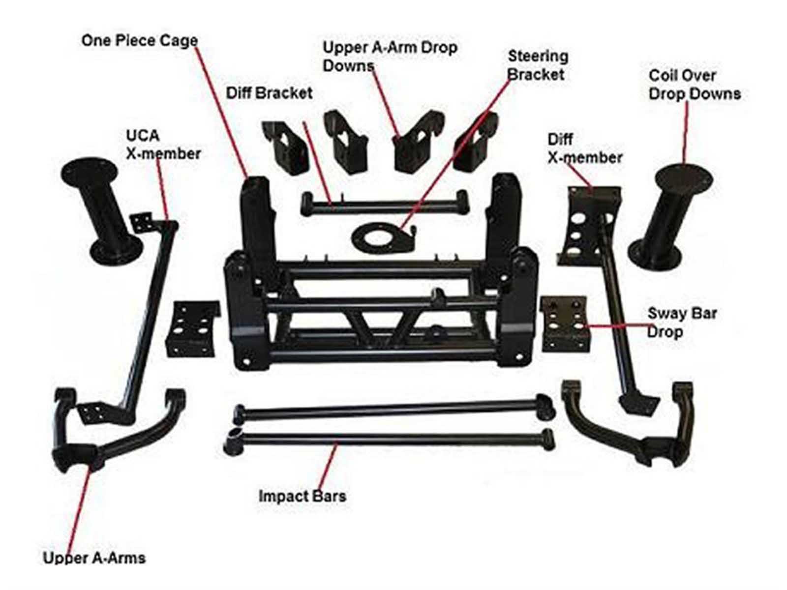 This Bulletproof Suspension kit from Accesspeed comes with detailed installation instructions and a complete hardware kit, packaged separately, and labeled for each step of the installation. If you get in a bind, just call the BPS tech line for expert guidance throughout the installation process.  You will need to extend the front drive shaft 1-1/2” for this lift kit.