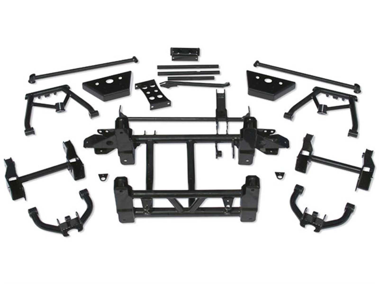 Bulletproof Suspension only uses the best when manufacturing your kit, using A36 Steel Plate 1/4″ thick or thicker and heavy wall DOM, Seamless steel tubing, and continuous seam welding. All Bulletproof Suspension manufactured parts are coated in a glossy black powder coat, so the kit is ready to be installed right out of the box. Other color options are available at an additional cost. Bulletproof Suspension kits require no welding. (Some minor cutting/trimming may be involved with some vehicles). Bulletproof Suspension designed this kit to keep the factory track width and alignment specs. With this kit you will be able to run up to 38” x 13.50” tires, with a recommended wheel back spacing of 4-1/2″. All Bulletproof manufactured parts are covered by a lifetime transferable warranty. Warranty does not cover wearable parts like ball joints, bushings, heim joints, uniballs and shocks.