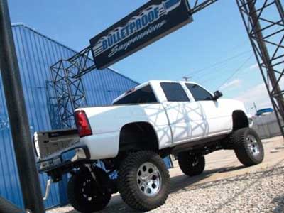 The Bulletproof Suspension 2WD Chevrolet 1500 kit comes standard with their Dual Shock system, as well as off-set a-arms for increased caster gain, and Bulletproof Suspension’s exclusive “One Piece Cage” lift design. The kit starts out as a 10” lift, and by using 3” springs and BPS coil wedges, the lift achieves a comfortable 14” height. For those wanting the maximum lift height, you can up-grade and utilize the Bulletproof Suspension 4” Lift Spindles, taking your truck up to 18”. Bulletproof Suspension engineers know that you require reliability and they have designed this system to prevent any extreme angles by incorporating bump-stops and droop-stops to keep the rack and pinion and ball joints from overextending. This kit also comes with complete instructions with photos and hardware kit labeled for each step of the installation. Six shocks are required for this system, and we offer Standard Bulletproof Suspension Shocks, as well as other aftermarket shocks, which can be quoted separately.