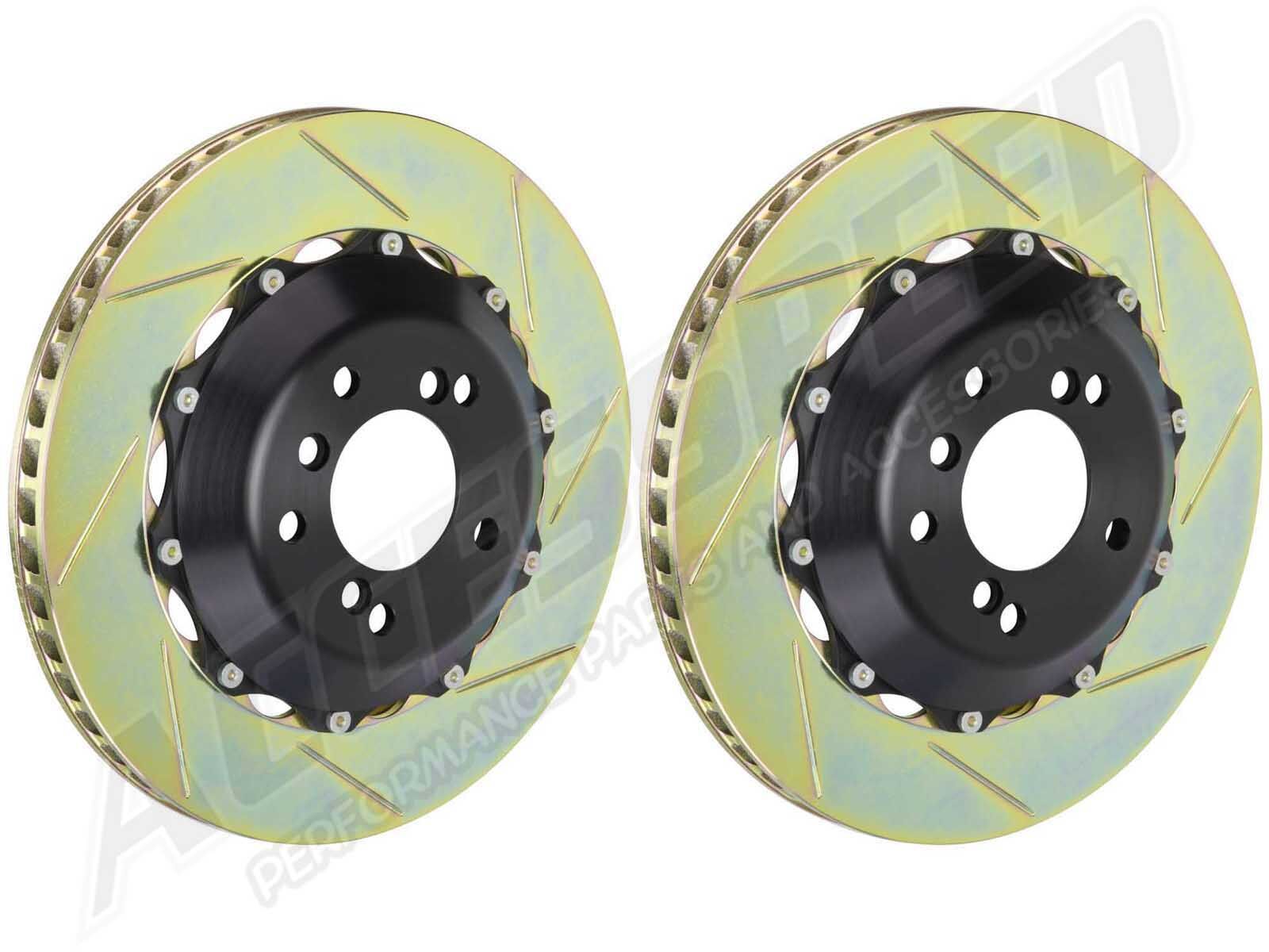 The Brembo GT Rotor Upgrade Kits from Accesspeed provide maximum performance and optimum braking balance while retaining original equipment calipers. These systems are designed to be fully compatible with standard calipers, wheels and all other original equipment components. An increase in brake torque and heat dispersion is guaranteed, allowing for the reduction in braking distance and in the fading effect. Depending on the vehicle, the discs can be oversized, in which case a dedicated bracket is supplied to allow installation with OE calipers, and you will need to check the space occupied within the rim must be specified. Includes everything you need to simply swap out your existing rotors for these upgraded performance Brembo rotors.