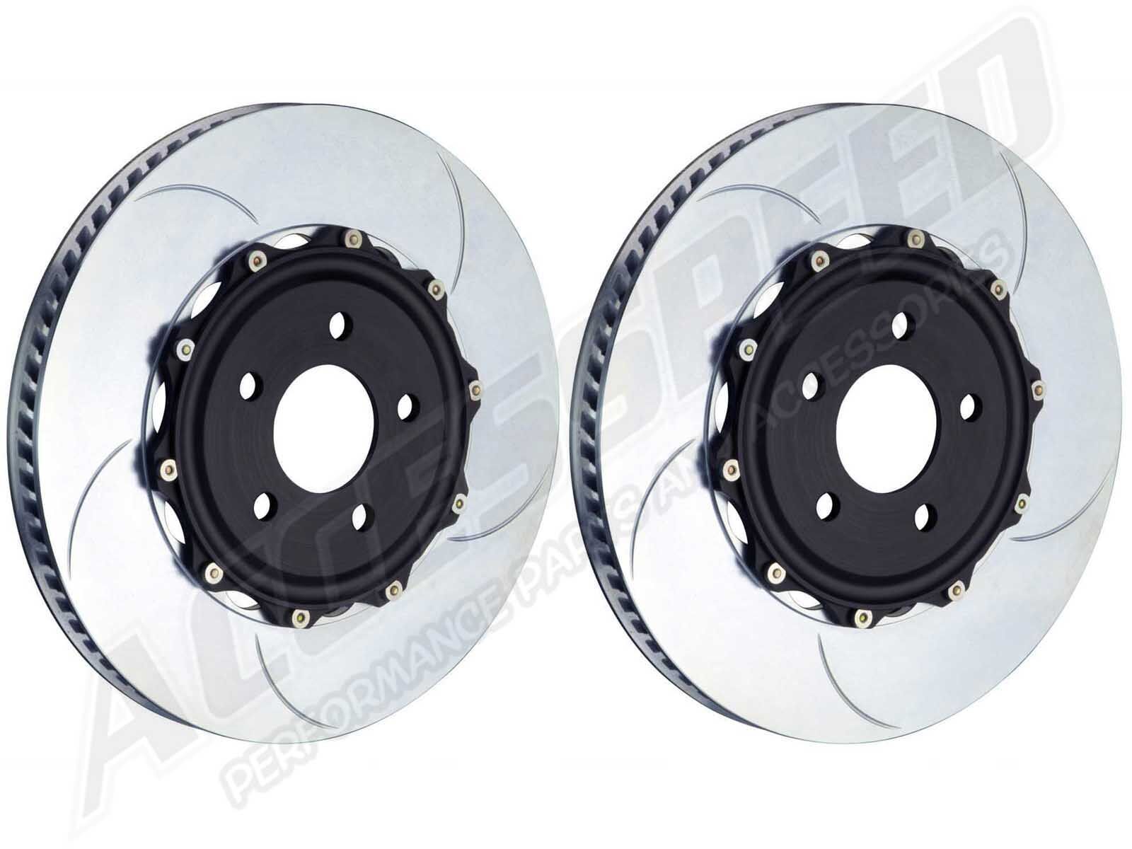 The Brembo GT Rotor Upgrade Kits from Accesspeed provide maximum performance and optimum braking balance while retaining original equipment calipers. These systems are designed to be fully compatible with standard calipers, wheels and all other original equipment components. An increase in brake torque and heat dispersion is guaranteed, allowing for the reduction in braking distance and in the fading effect. Depending on the vehicle, the discs can be oversized, in which case a dedicated bracket is supplied to allow installation with OE calipers, and you will need to check the space occupied within the rim must be specified. Includes everything you need to simply swap out your existing rotors for these upgraded performance Brembo rotors.