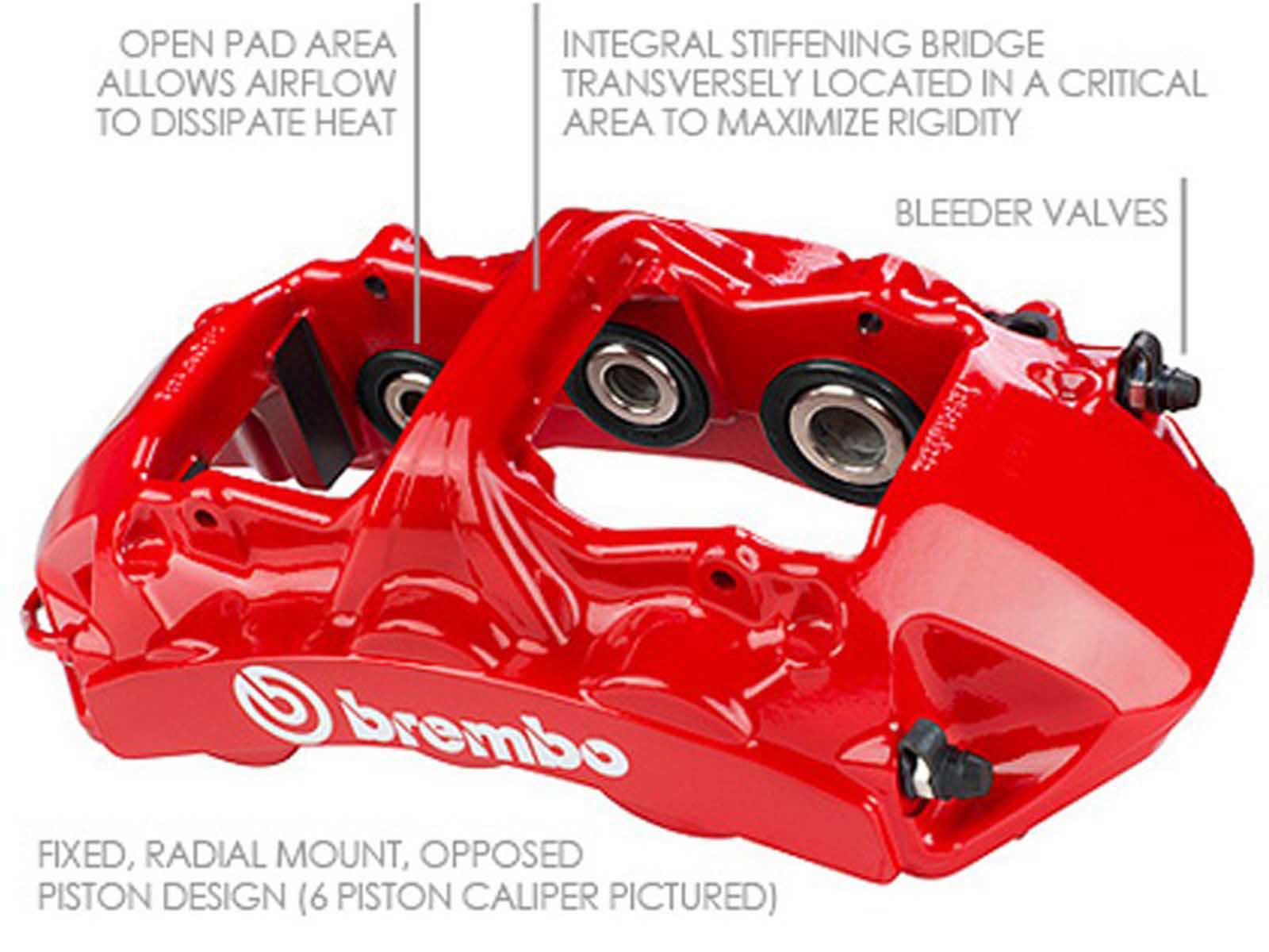 Braking systems consisting of motorsports-derived components offering levels of technology and performance without par on the market today and embodying the purest expression of Brembo's state-of-the-art technology.  The kit consists of aluminium calipers with opposed pistons which, depending on the car model and in increasing order of performance, may be composite, monoblock or even billet monoblock components, combined with cross-drilled or slotted integral or composite oversized discs.  Brembo kits combine the best solutions available to offer the perfect solution for the individual characteristics of each model.  The heart of the kit consists of aluminium calipers. These are also available as monoblock parts machined from a single billet of cast aluminium, which ensure outstanding rigidity and minimised deformation. The discs supplied in the kit, which may either be floating or integral, depending on the specific car model, feature an exclusive venting system that improves cooling capacity and increases resistance to cracking caused by thermal shock by over 40%.  Cross-drilled and slotted finishes are designed and executed with meticulous precision. These holes or slots in the braking surface help dissipate heat and eliminate brake dust and gases.  A set of high-performance brake pads with specific friction materials for each application, TÜV/DOT homologated metal-braided hoses, an adapter and high-quality fastener hardware complete the kit.