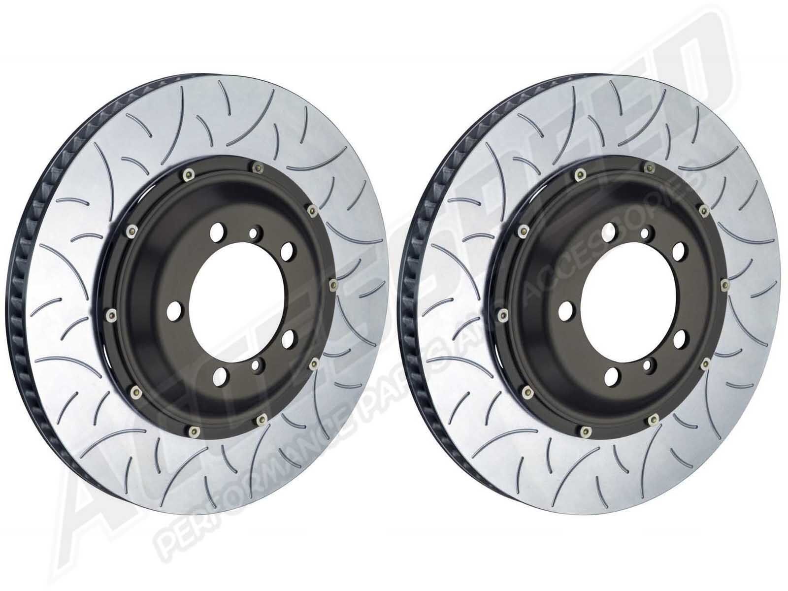The Brembo GT Rotor Upgrade Kits from Accesspeed provide maximum performance and optimum braking balance while retaining original equipment calipers. These systems are designed to be fully compatible with standard calipers, wheels and all other original equipment components. An increase in brake torque and heat dispersion is guaranteed, allowing for the reduction in braking distance and in the fading effect. Depending on the vehicle, the discs can be oversized, in which case a dedicated bracket is supplied to allow installation with OE calipers, and you will need to check the space occupied within the rim must be specified. Includes everything you need to simply swap out your existing rotors for these upgraded performance Brembo rotors.