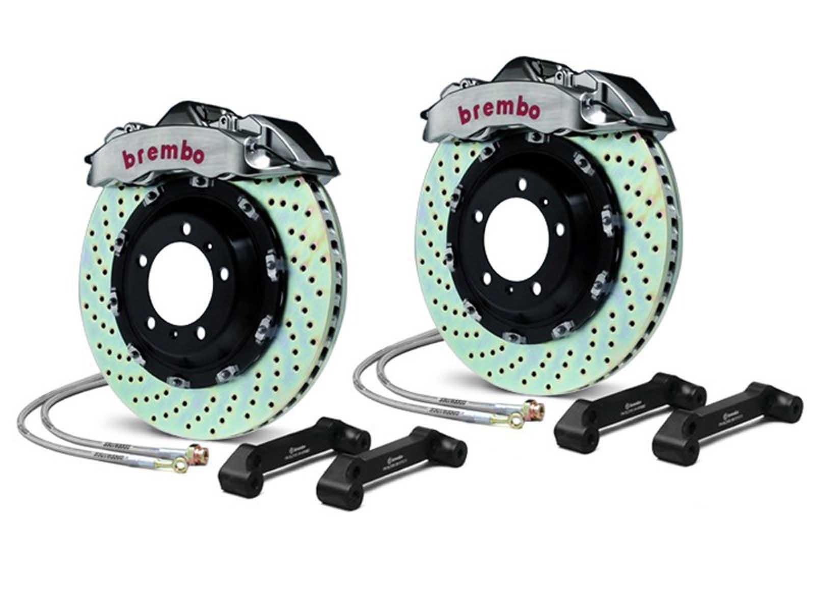 The GT-R braking systems are designed to meet the needs of aggressive braking whether on the road or the track. GT-R is the most advanced expression of all Brembo's experience in braking system design. The GT-R Kit is comprised of single block billet aluminium calipers with 4 and 6 piston radial attachment, two piece floating discs, pads with different friction material and high performance hardware.