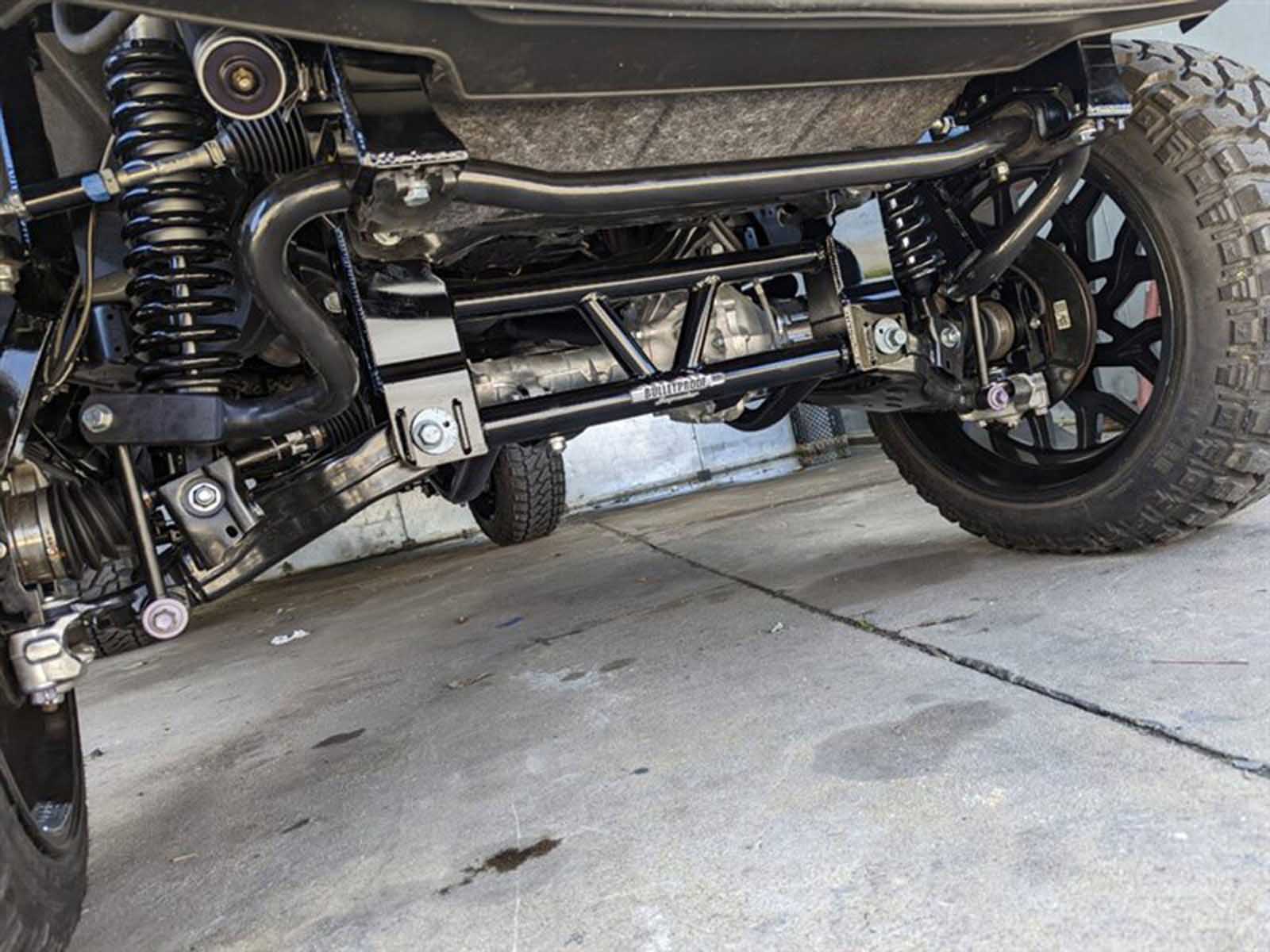 Bulletproof Suspension has added yet another kit to the Tundra lineup. With the great success of the Bulletproof Suspension Toyota Tundra 10-12 Inch Lift kit, Accesspeed is excited about the release of the Toyota Tundra 6-8 Inch Bulletproof Suspension Lift Kit. This kit incorporates the same great features as the 10-12 Inch Kit, with a slightly lower stance. The Bulletproof 6-8 Inch kit will work on the 2022-up Toyota Tundra 2WD and 4WD models, and just like the 10-12 Inch kit, this kit is all bolt-on, with NO welding required. (Minor cutting required.) The complete kit will include new Uniball upper control arms, heavy duty spindles, a massive one-piece cage, and high quality Chromoly Heim joints to replace those factory tie rod ends. This kit has many Bulletproof Suspension upgrade Options, including coil-overs, springs, remote reservoir shocks, full 9″ over stock Atlas leaf springs, and more! To finish off this already great kit, Bulletproof Suspension parts are covered in a gloss-black powder-coat, so out of the box it is ready to be installed. (Custom powder coat colors upon request.)  The Suspension kit is set up for 12” of lift, and if specified we can tone the Coilover spacers down to make it a 10” Lift.
