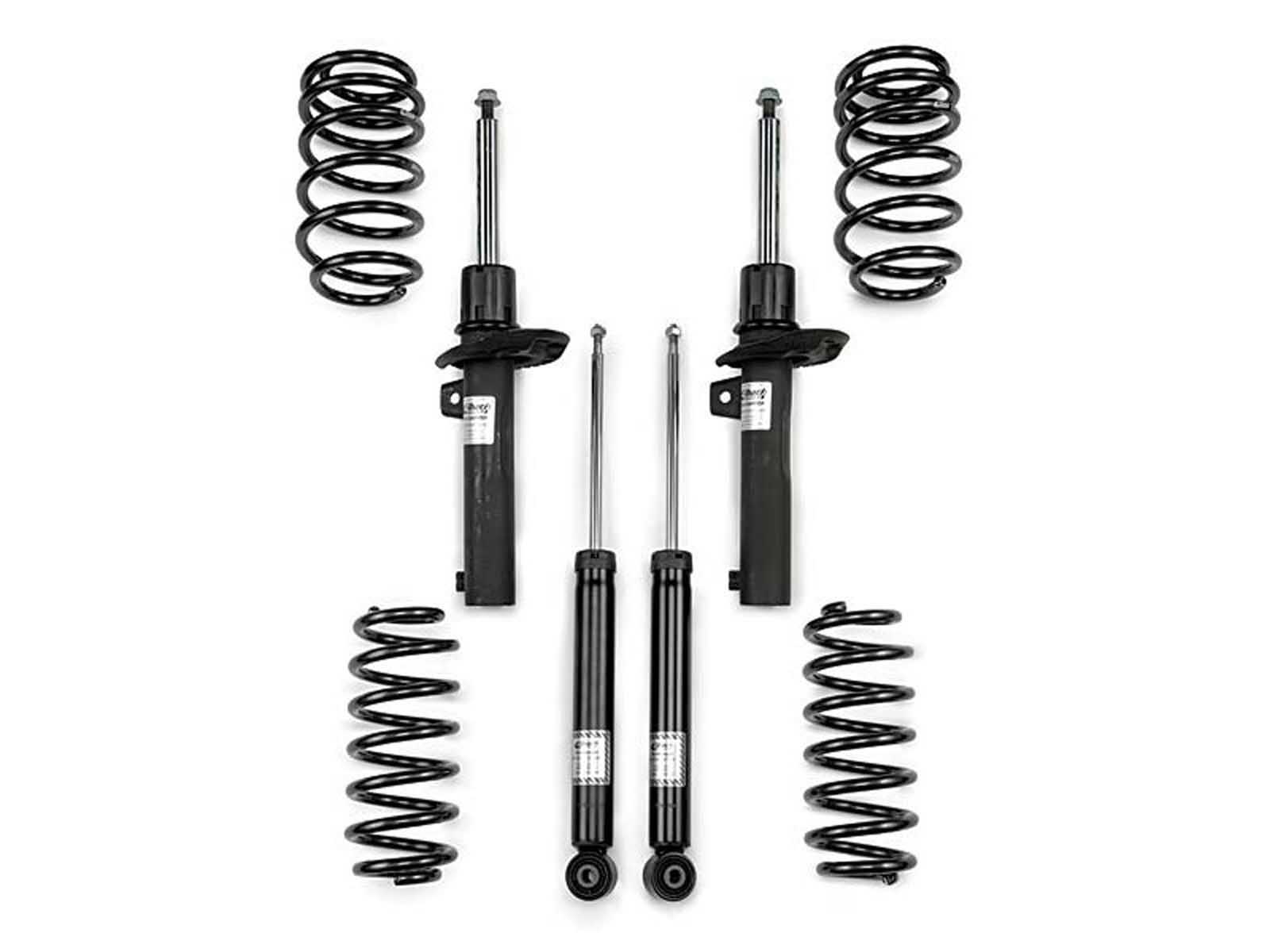 The Eibach Pro-System-Plus is a perfect step on the way to total suspension dominance. Pro-Plus kits are designed by our team of suspension engineers and ride control experts to offer the best-possible street performance. The Pro-Plus Kit is a precisely balanced combination of sport springs, bump-stops (secondary springs) and anti-roll bars designed and tuned to operate as a performance suspension system. Pro-Plus Kit improves turn-in response, increases cornering speed and reduces body roll. Pro-Plus Kit is the ultimate performance suspension system—a must for any true driving enthusiast. *Also available as a Sport-Plus-Kit, which includes Sportline lowering––for the lowest possible drop and over the top handling.