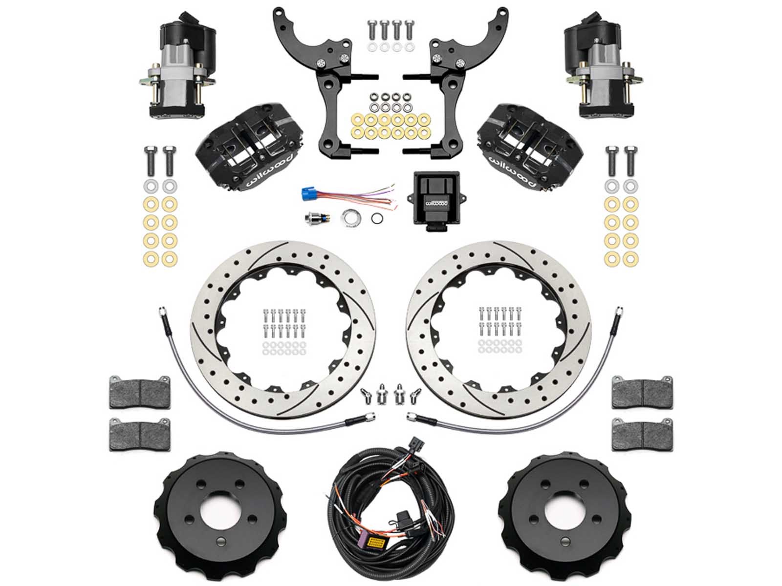 Wilwood Dynapro 4 Radial EPB Rear Big Brake Kits from Accesspeed replace the factory disc brakes and use the EPB electronic parking brake caliper as a compliment to front big brake upgrades on late model high performance vehicles. High-capacity braking from the Dynapro Radial calipers, BP-10 compound pads, and oversized 12.88” rotors are matched to the OE master cylinder output, ABS function, and individual vehicle bias requirements. Enhanced brake performance, increased durability, and high-tech style compliment big wheel, tire, and suspension upgrades on customized vehicles and all others with increased brake requirements.