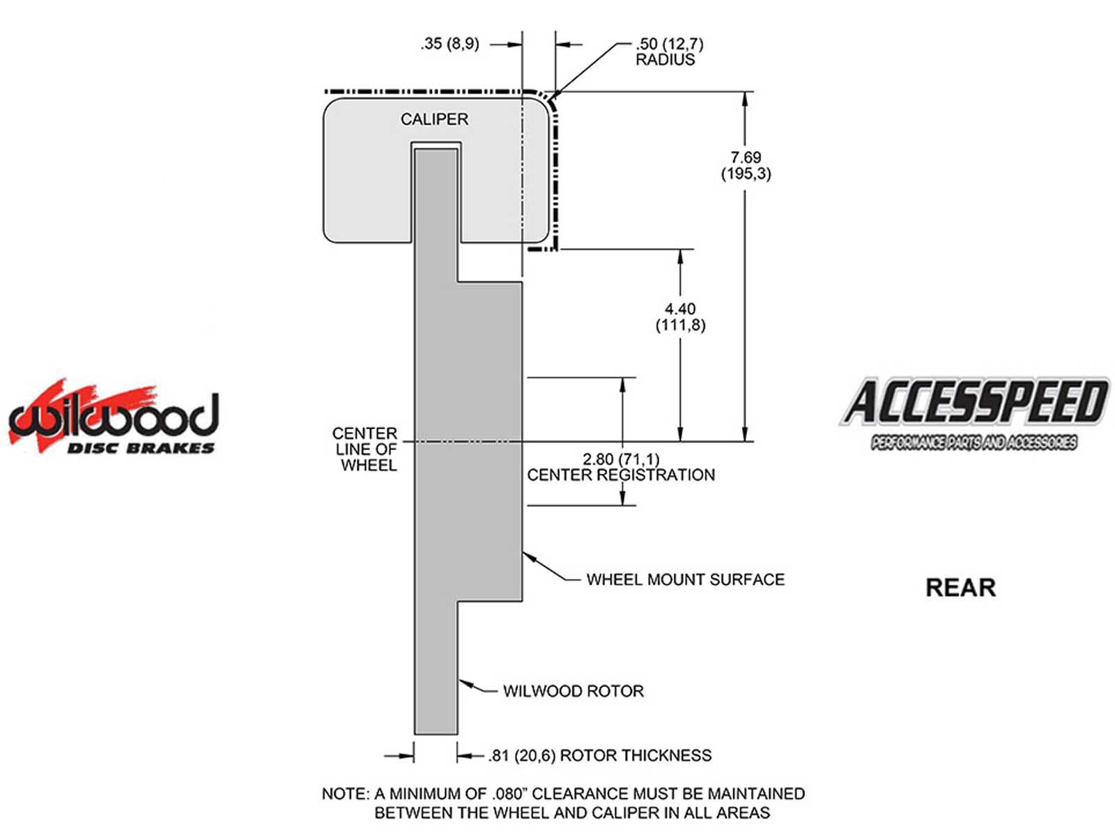 *This Brake Kit may require 17-inch or larger wheels. Please refer to the wheel clearance diagram image to verify caliper clearance for your specific wheel.