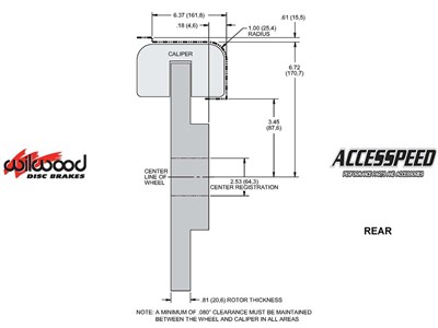 *This Brake Kit may require 15-inch or larger wheels. Please refer to the wheel clearance diagram image to verify caliper clearance for your specific wheel.