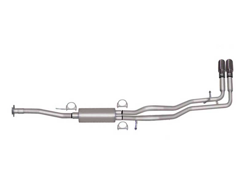 If you're looking to add a little style to your Truck or SUV and want to keep the exhaust from affecting your tow trailer, this Dual Cat back Exhaust System is for you, exiting behind the rear tire for a look that sets your vehicle apart on the street or in the dirt. Hassle free, bolt-on installation with professional looking results. No welding required. Backed by a Lifetime Limited Warranty. Gibson Dual Sport Exhaust System offers a powerful authoritative deep exhaust tone with no annoying noise inside the cab. Dyno tested to assure increased horsepower and produce more torque. Average horsepower gains are 10-15 and 15-20lb-ft of increase torque.